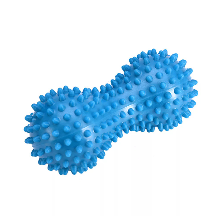 Мяч массажный двойной с шипами, в форме арахис для снятия триггеров ( голубой), 15*7 см