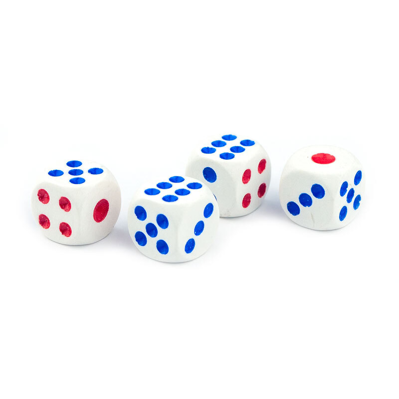 Кубики игровые (зары, кость) Sportsteel, белые , 17мм, комплект 4шт.
