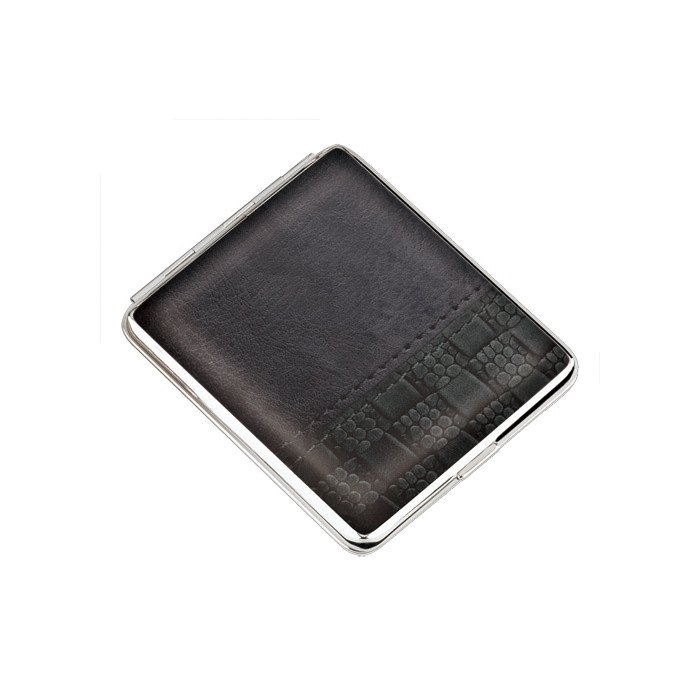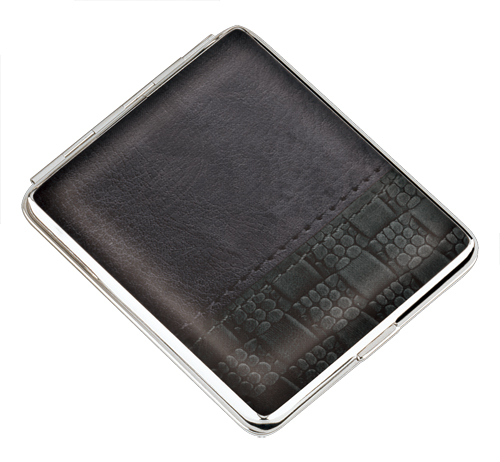 Портсигар S.Quire, сталь+натуральная кожа, черный цвет с рисунком, 74*95*18 мм