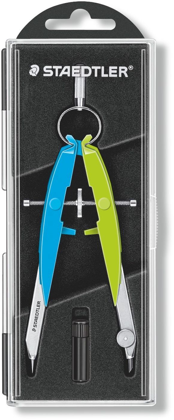 Циркуль Staedtler Mars Comfort, в пластиковом футляре, 556 00-N1, голубой, зеленый, серебристый