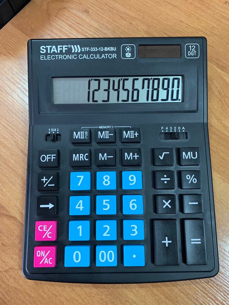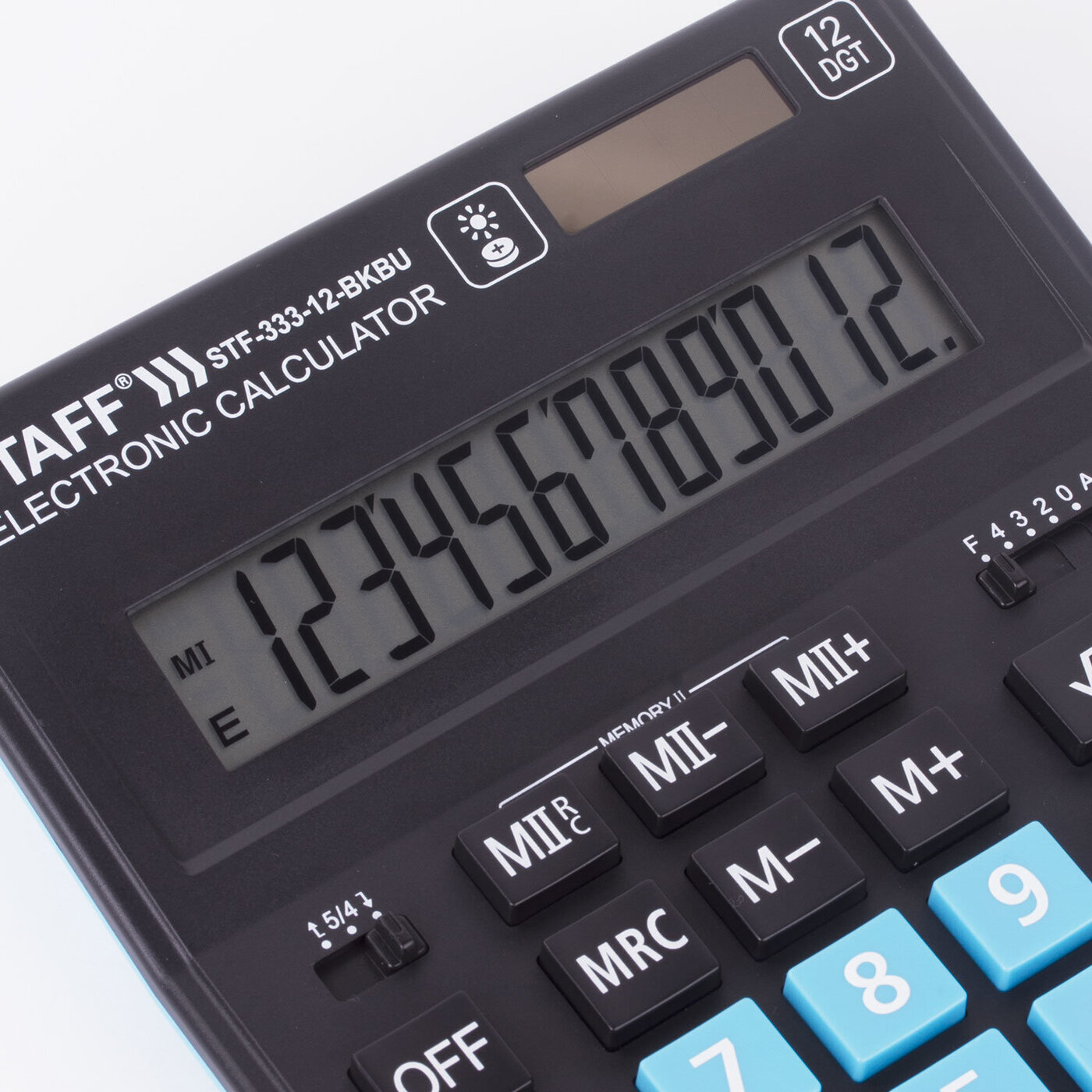 Калькулятор настольный Staff Plus STF-333-BKBU, 12 разрядов, двойное питание, черно-синий