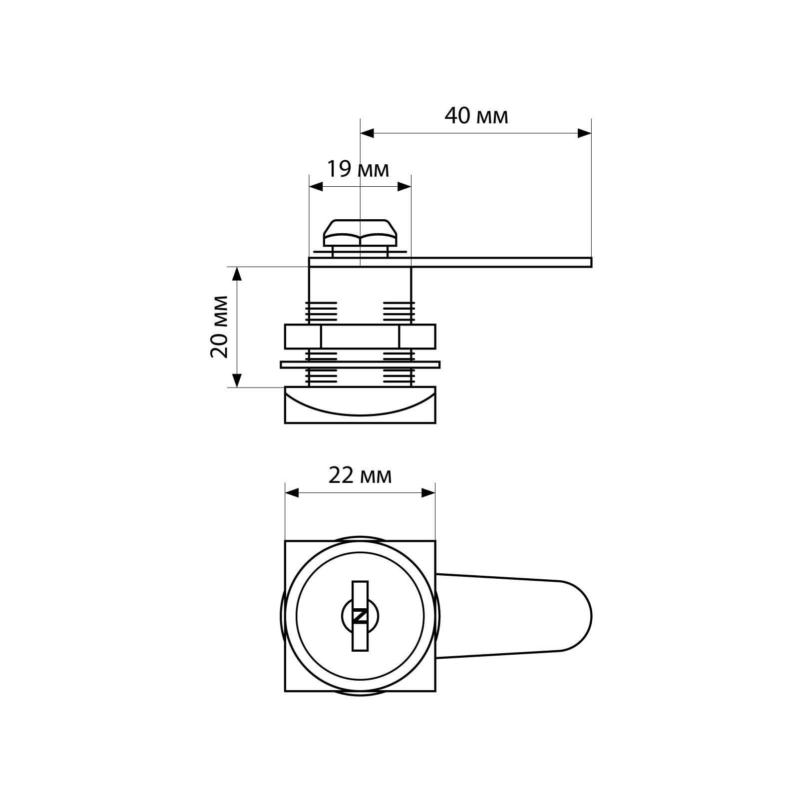 Почтовый замок врезной для ящиков, шкафов, электрощитов 20 мм СТАНДАРТ ЗМ 0802, квадратное основание