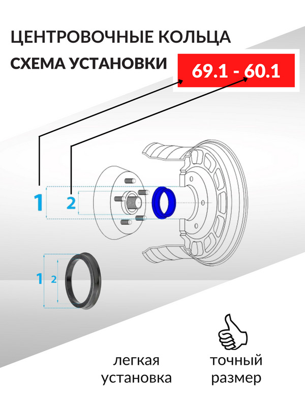 Центровочные кольца для автомобильных дисков 69.1-60.1 - 4 шт.