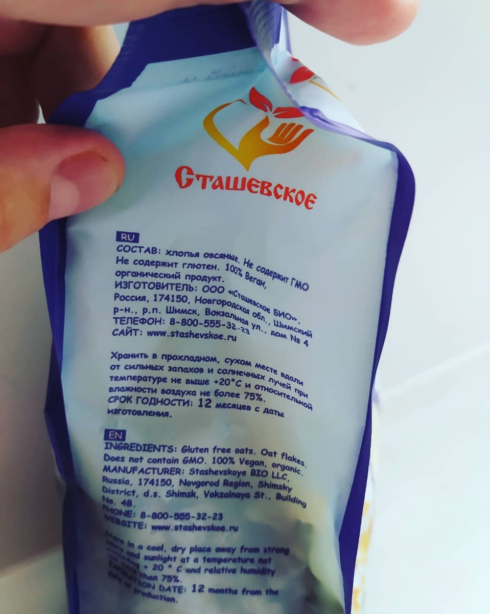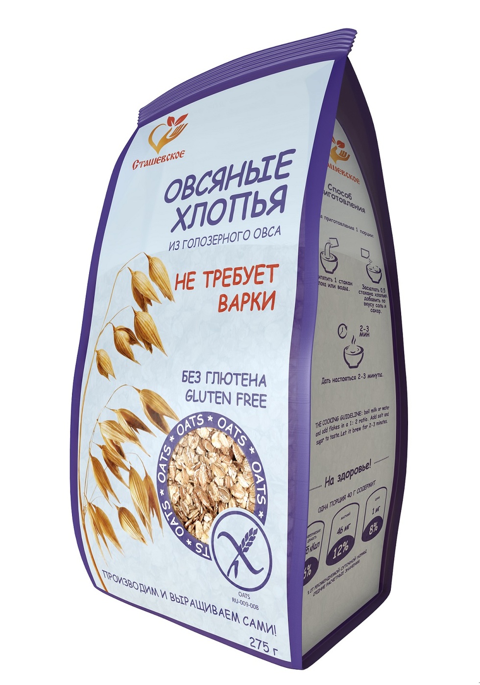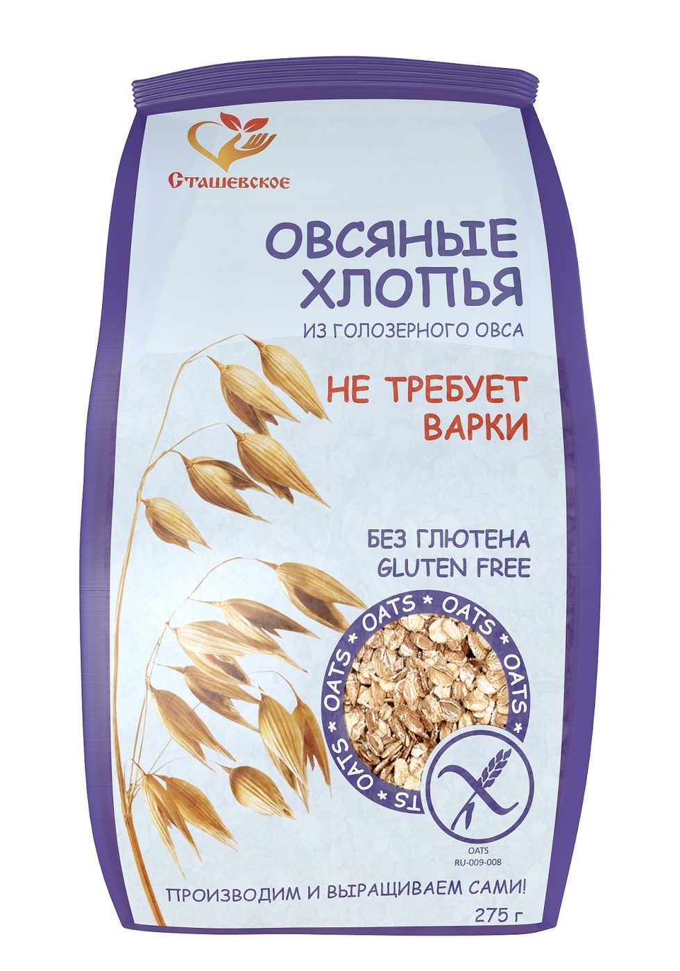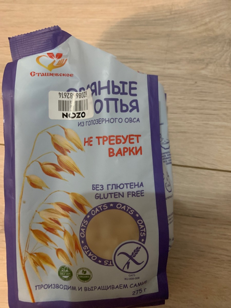 Овсяные хлопья из голозерного овса без содержания глютена, не требующие варки "Сташевское"
