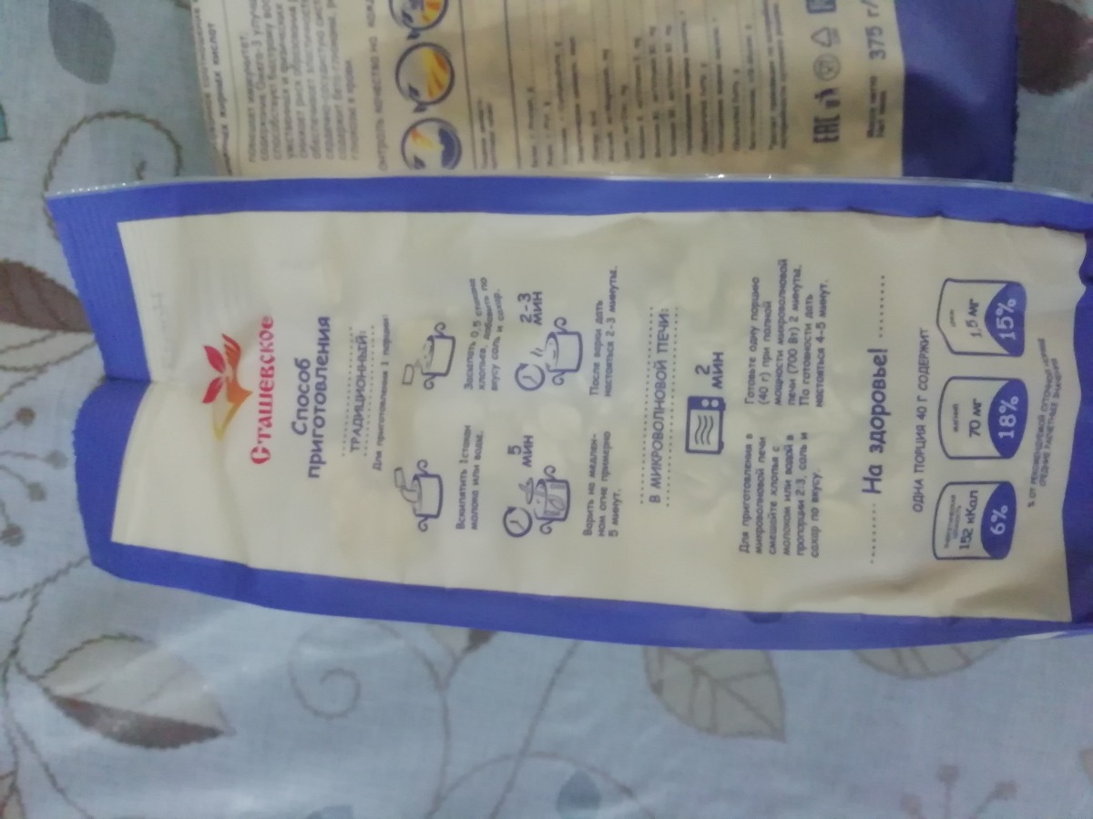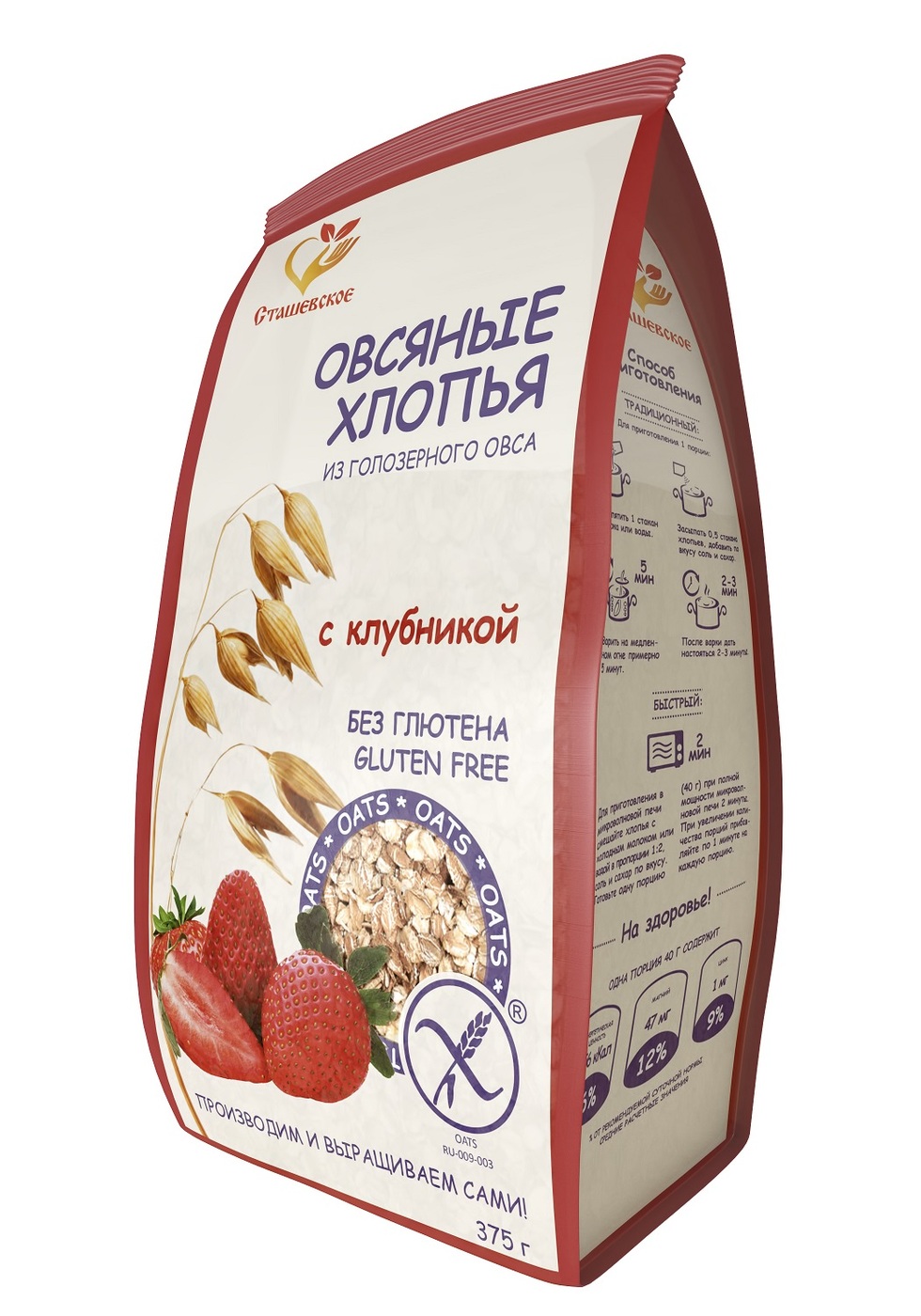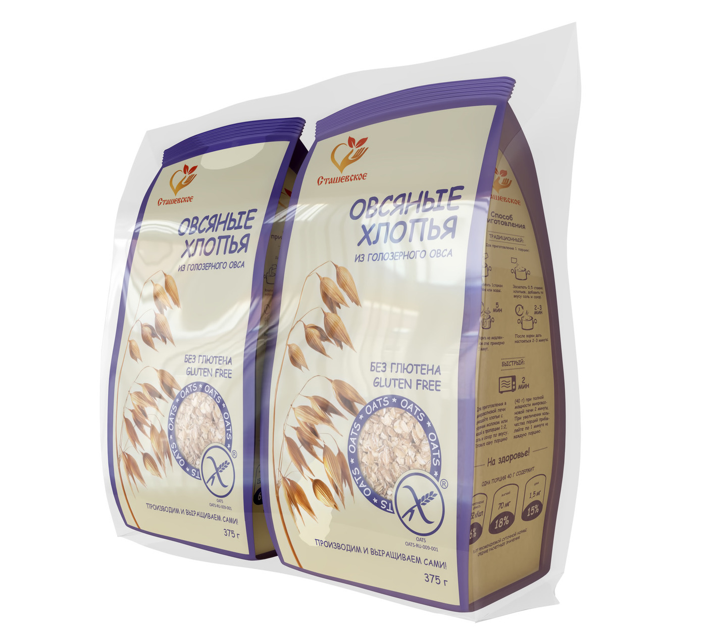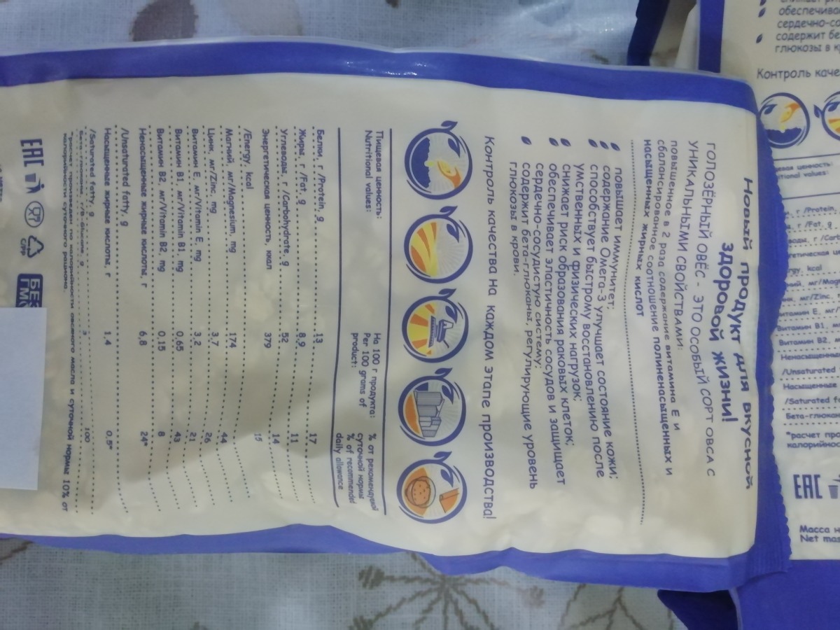 Овсяные хлопья из голозерного овса без содержания глютена, не требующие варки "Сташевское"