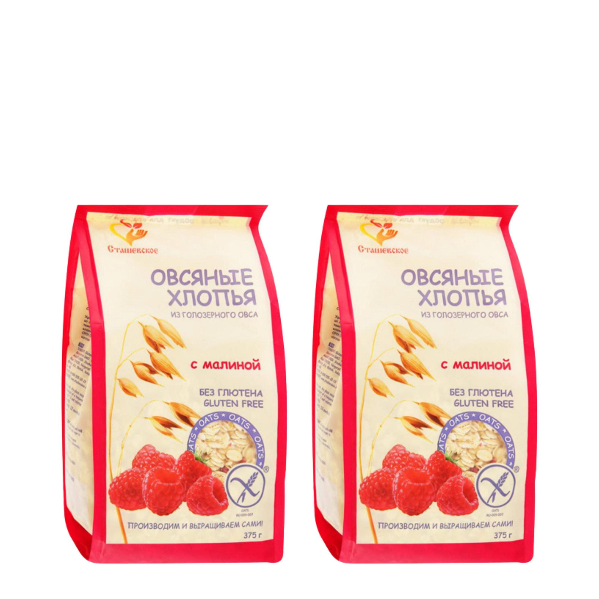 Хлопья овсяные безглютен. с малиной, 375 гр (Сташевское Био) (2 шт. в наборе)