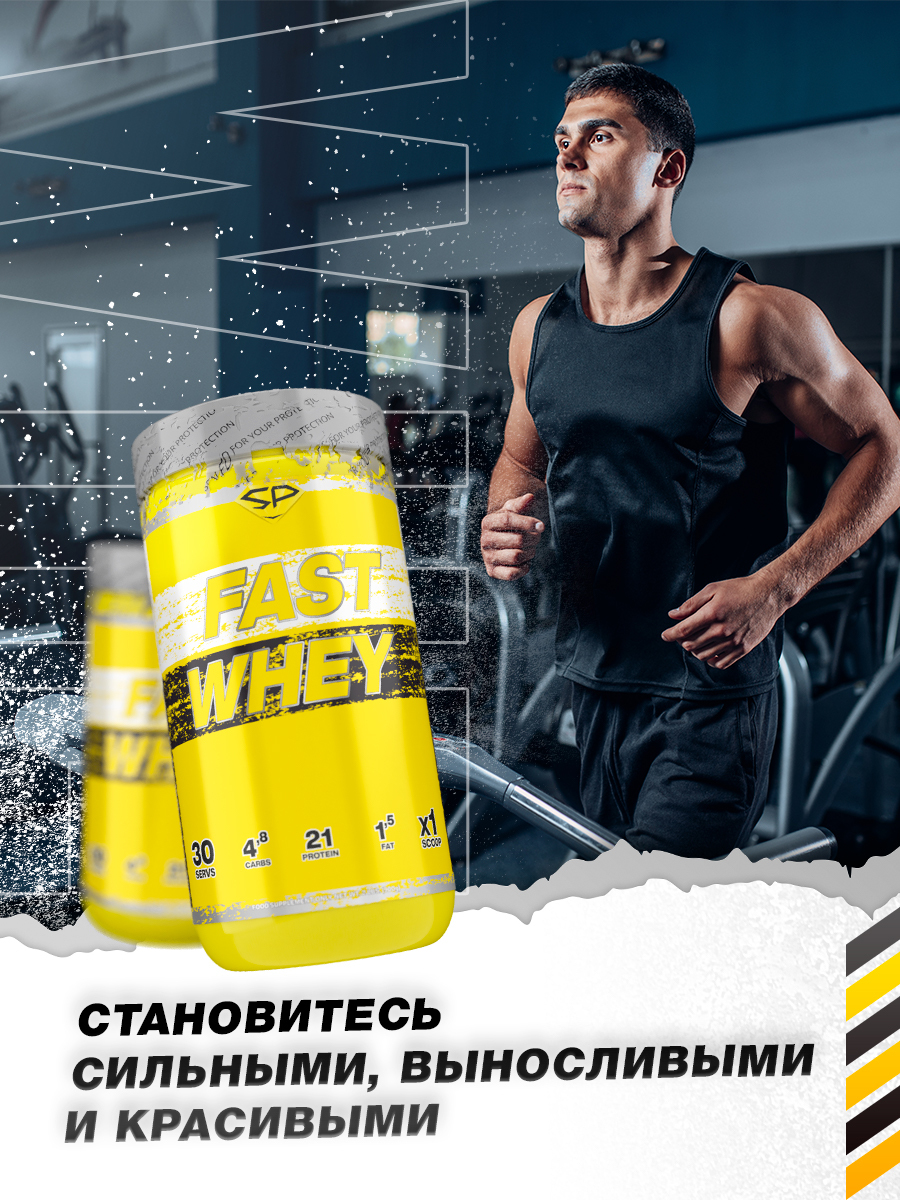 Протеин сывороточный STEELPOWER / Протеиновый коктейль для похудения / Сывороточный протеин FAST WHEY, 900 гр, Банан