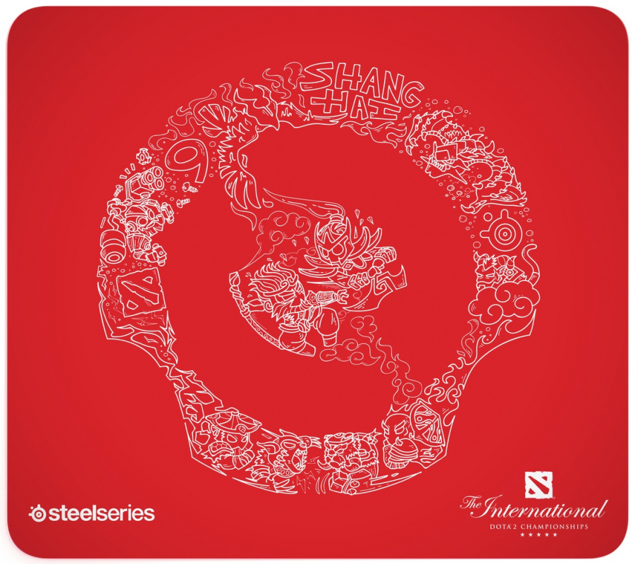 Игровой коврик для мыши SteelSeries QcK Large Dota 2 Edition, красный, белый