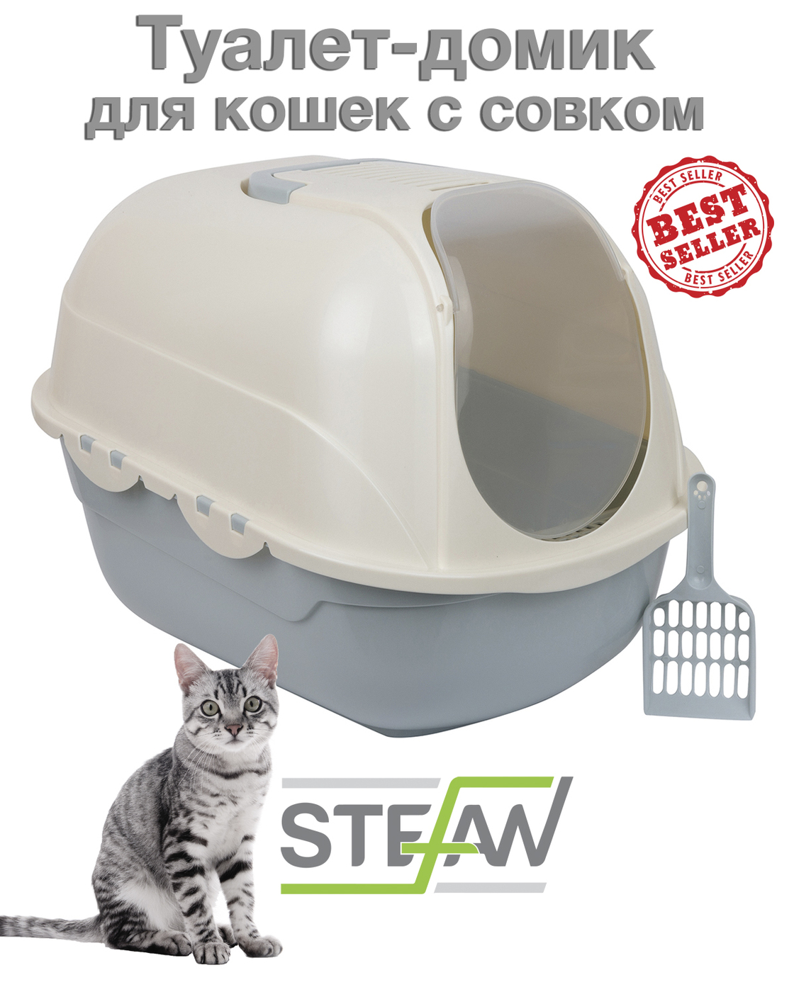 Туалет-домик, лоток для кошек "STEFAN", совок в комплекте, размер 53х41х42 cм, серо-голубой, BP2535