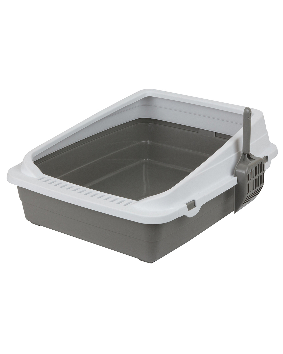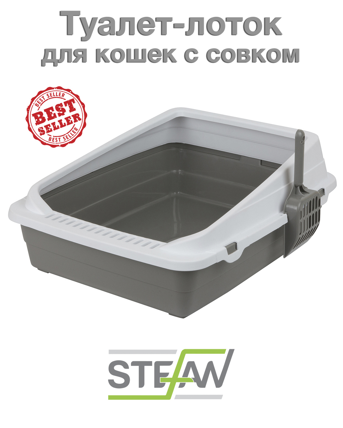 Туалет-лоток для кошек с совком STEFAN, средний (M) размер 48х39х18см, серый, BP2511