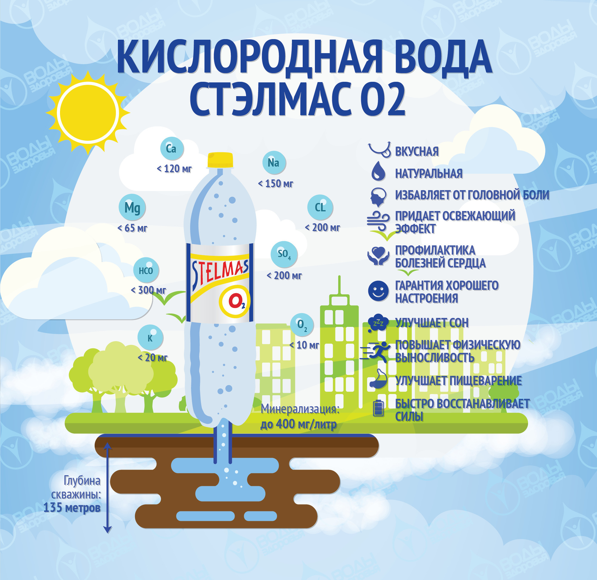 Stelmas O2 питьевая вода обогащенная кислородом,1,5л, ПЭТ
