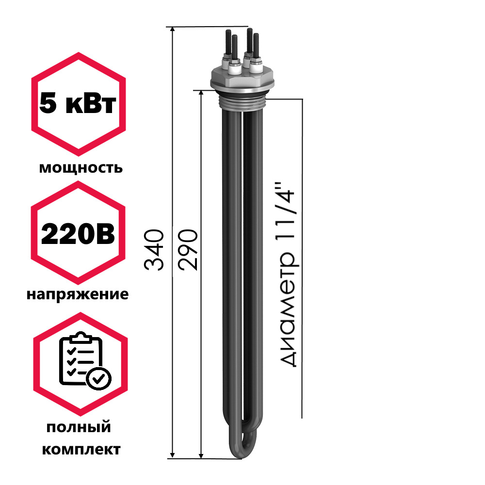Блок ТЭН ТЭНБ 5 кВт G 1-1/4" (углеродистая сталь)