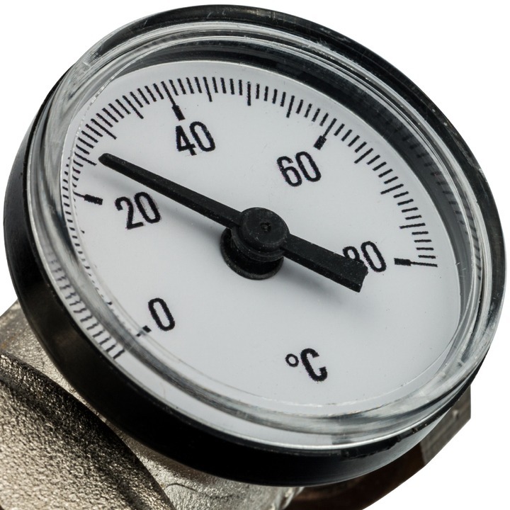 STOUT Комплект прямых шаровых кранов с термометрами 1"