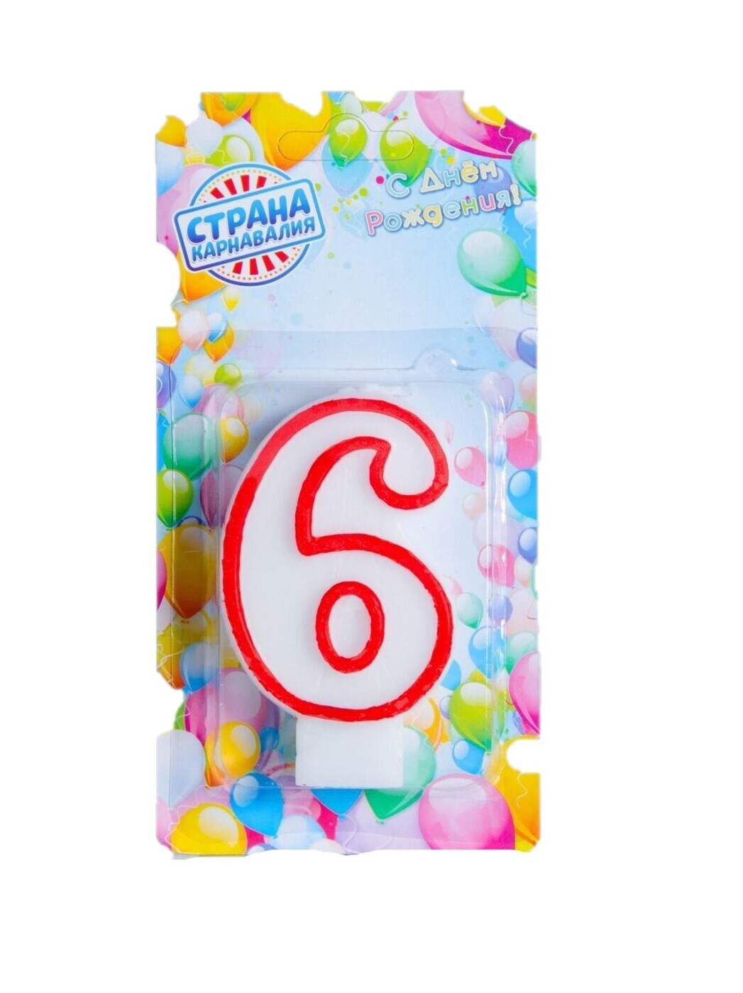 Свечи для торта Страна Карнавалия цифра 6, 1 шт