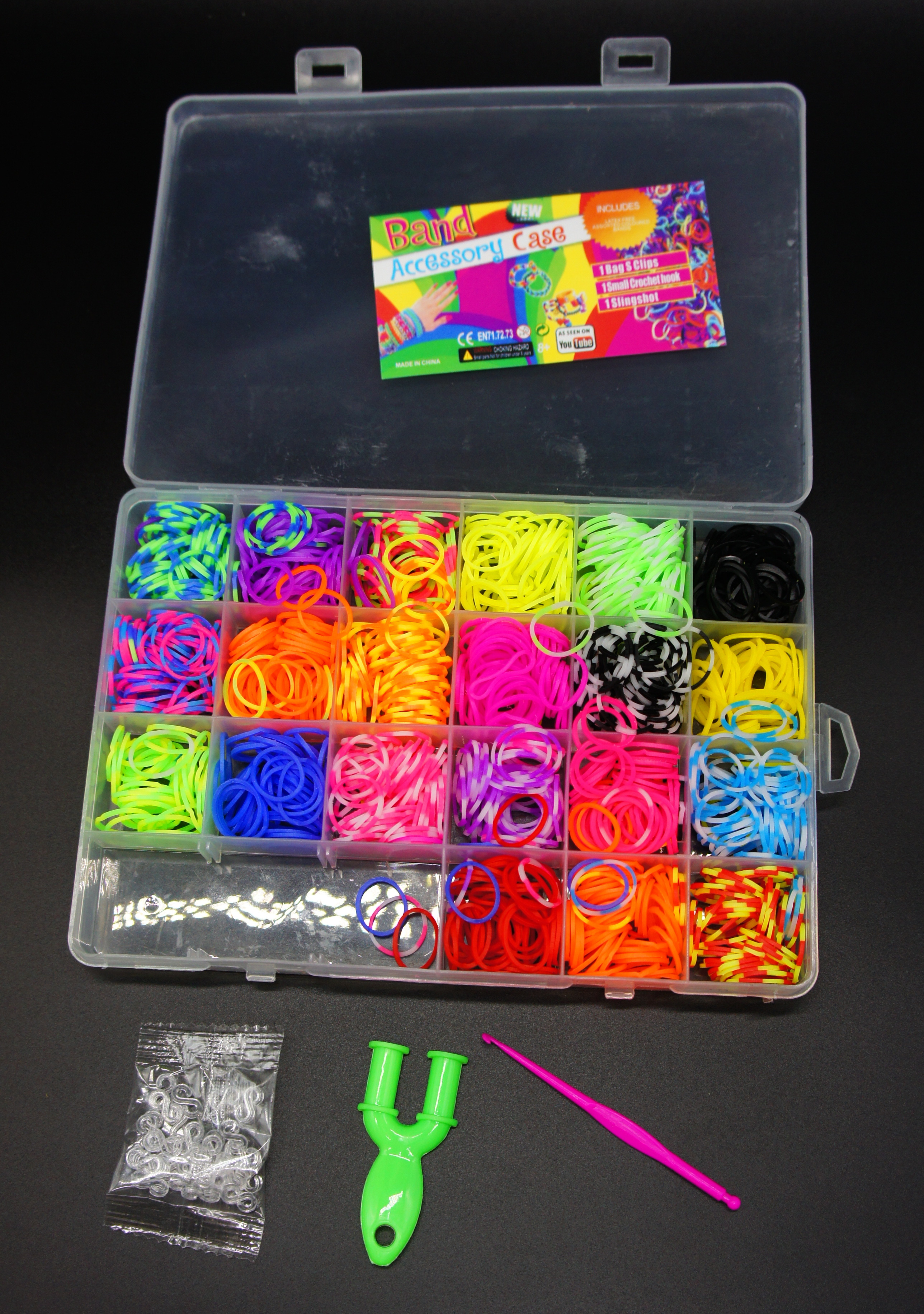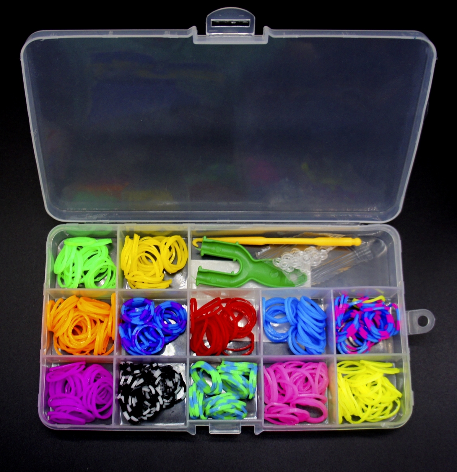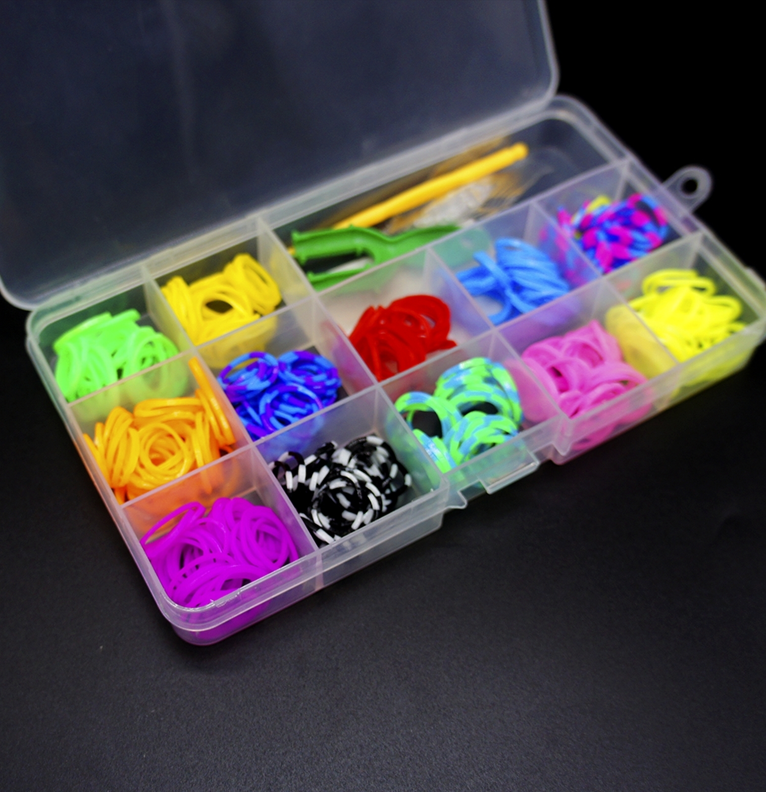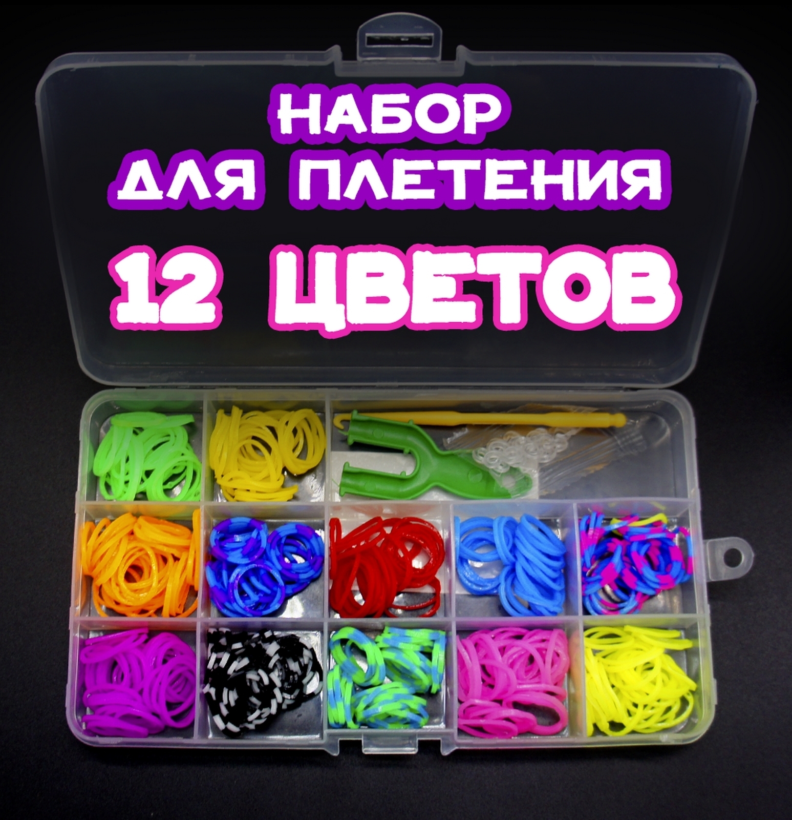 Набор резиночек для плетения браслетов 12 цветов в маленьком боксе, цветные резиночки для плетения