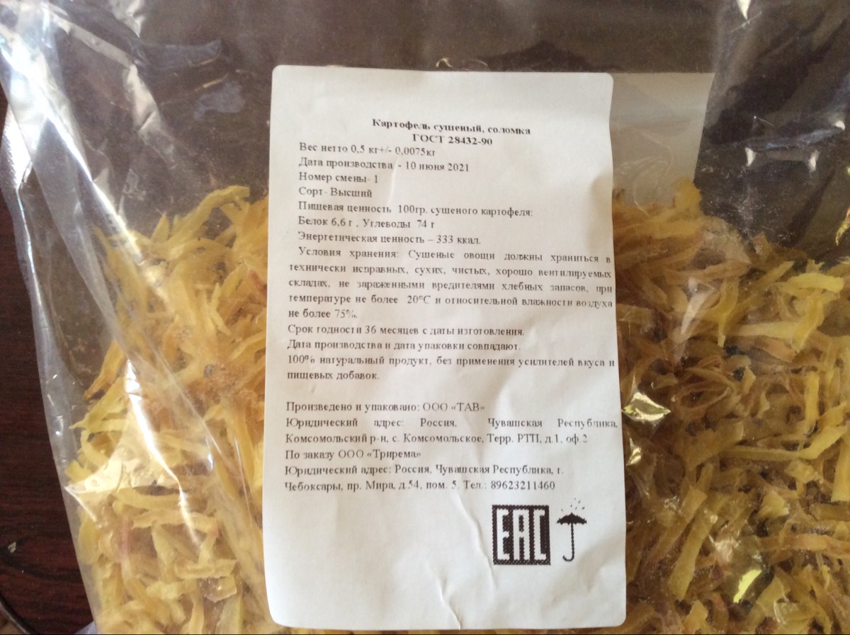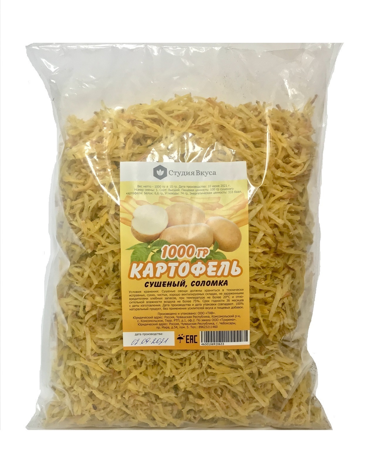 Картофель сушеный высший сорт, соломка Студия Вкуса 1 кг