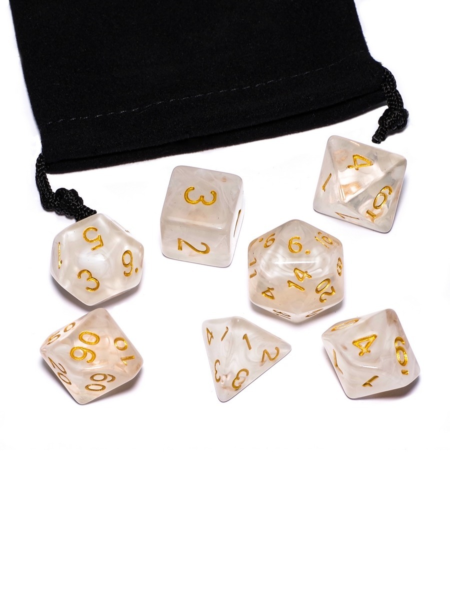 Набор кубиков Stuff-Pro для ролевых игр (шёлковый дым белый золотистый)