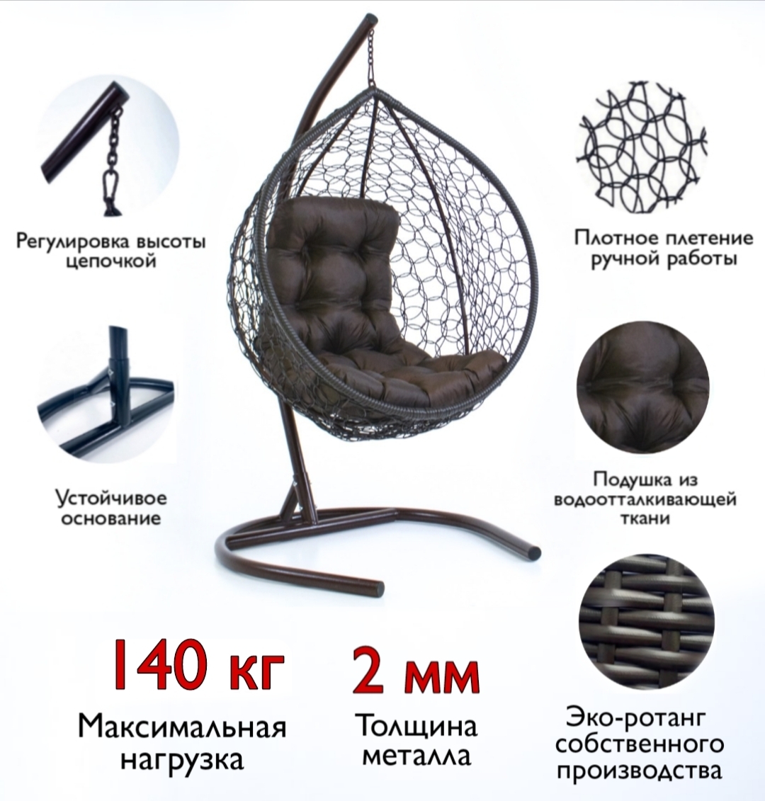 Подвесное кресло садовое, Качели-гнездо 100х100х175 см, STULER Модерн