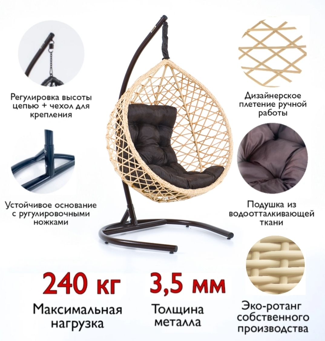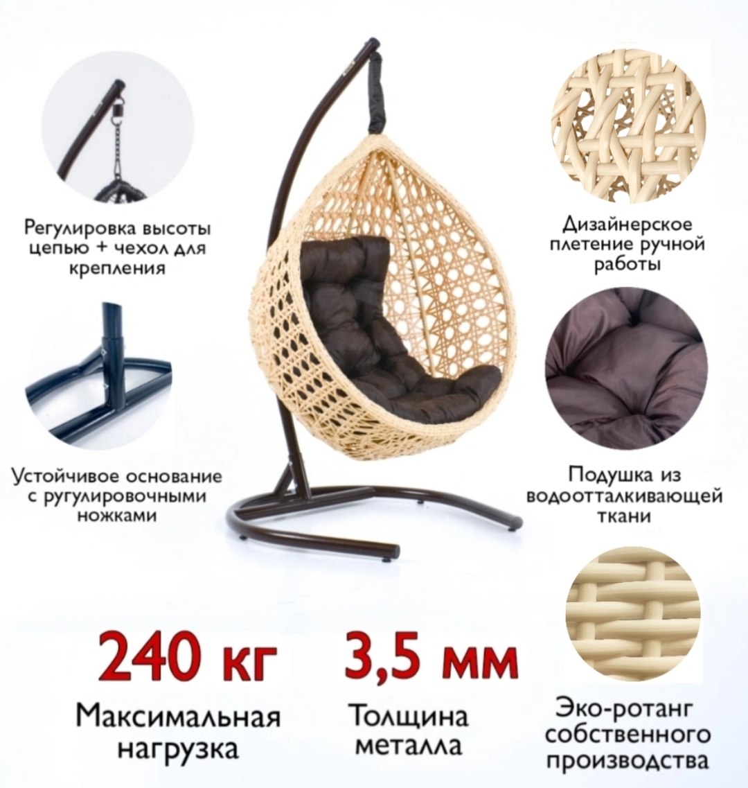 Подвесное кресло садовое, Садовые качели 100х100х175 см, STULER Travel Премиум