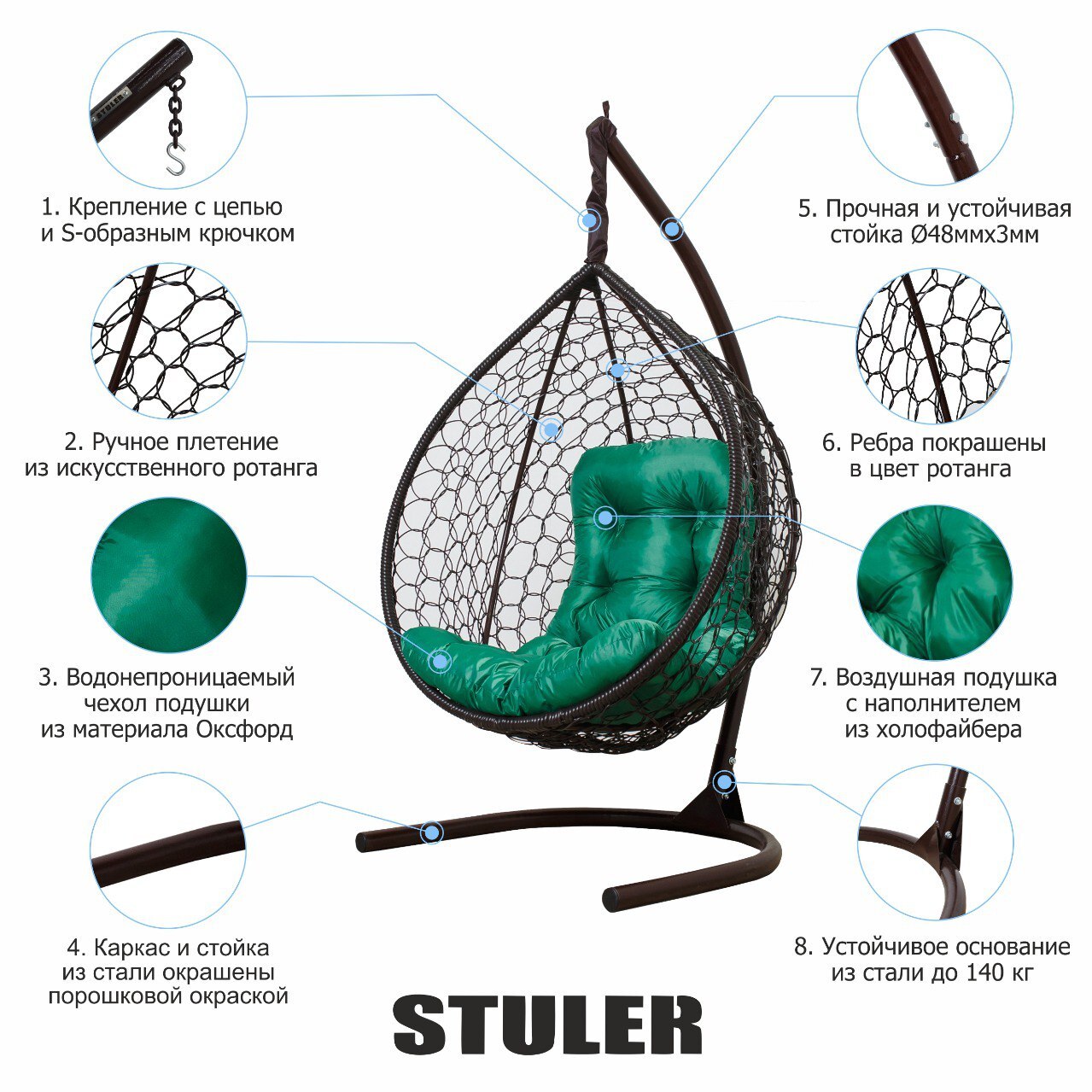 Качели-гнездо, Подвесное кресло детское 120х82х175 см, STULER Балкон