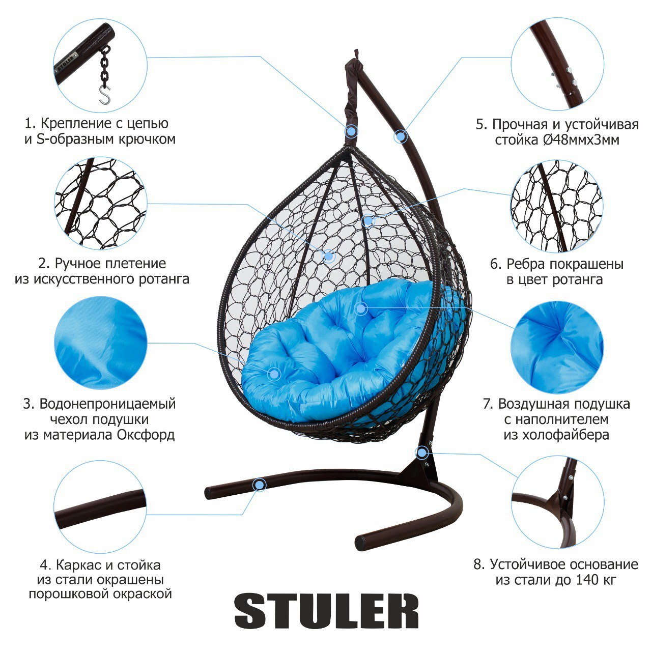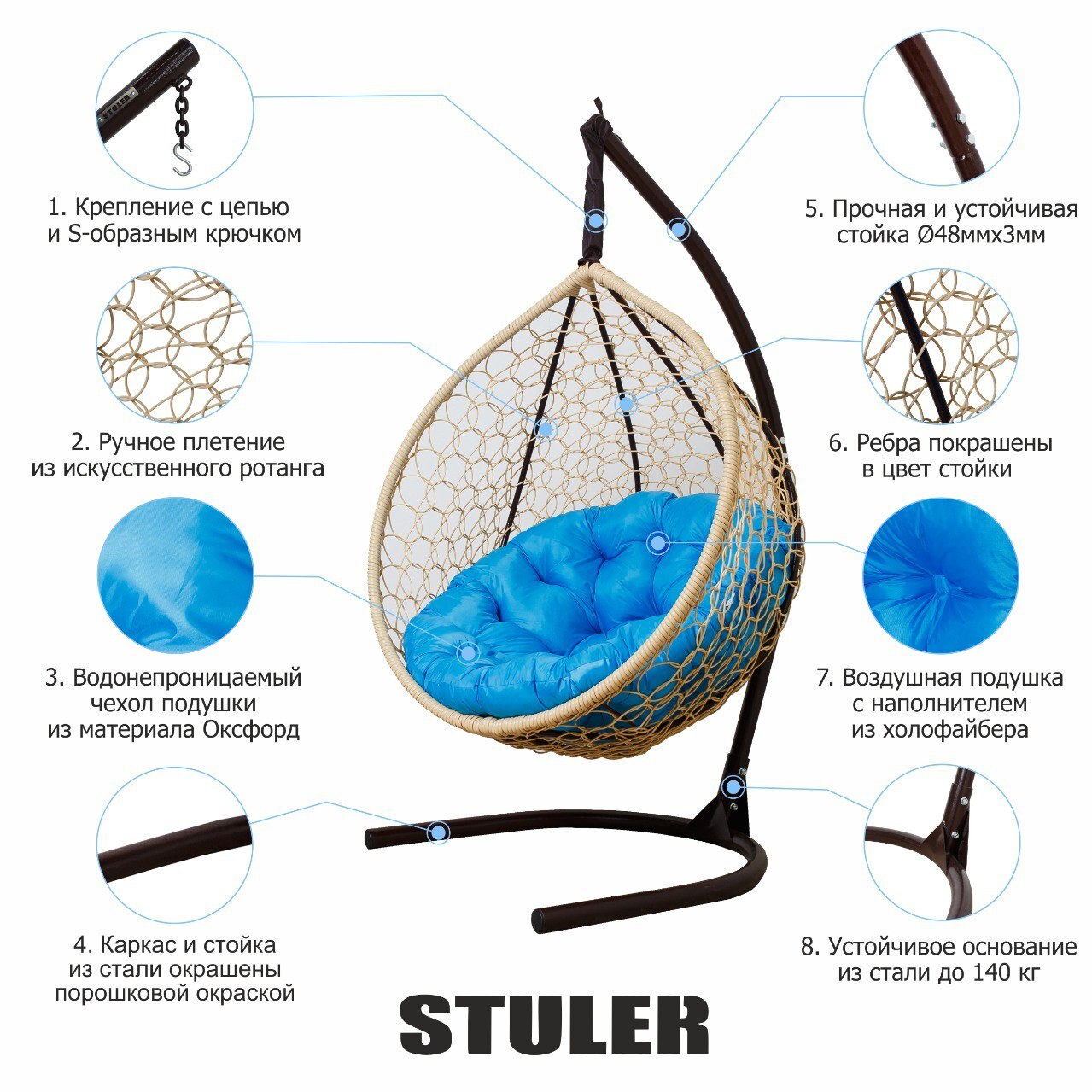 Подвесное кресло садовое, Качели-гнездо 100х100х175 см, STULER Модерн