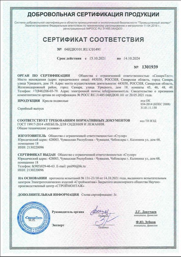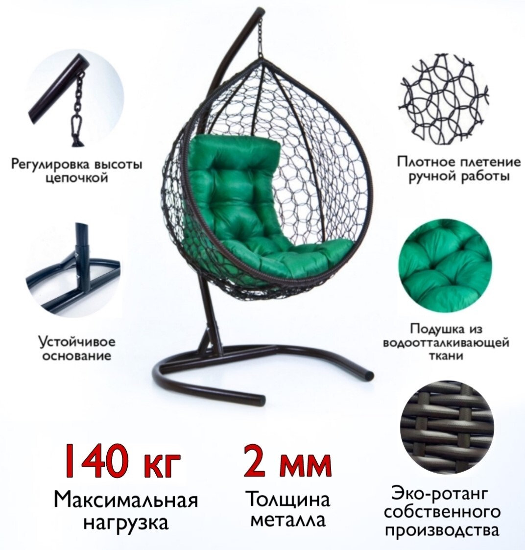 Подвесное кресло садовое, Садовые качели 100х100х100 см, STULER Кокон RX Travel