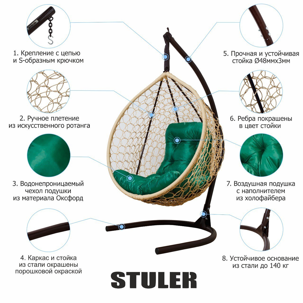 Качели-гнездо, Подвесное кресло детское 120х82х175 см, STULER Балкон