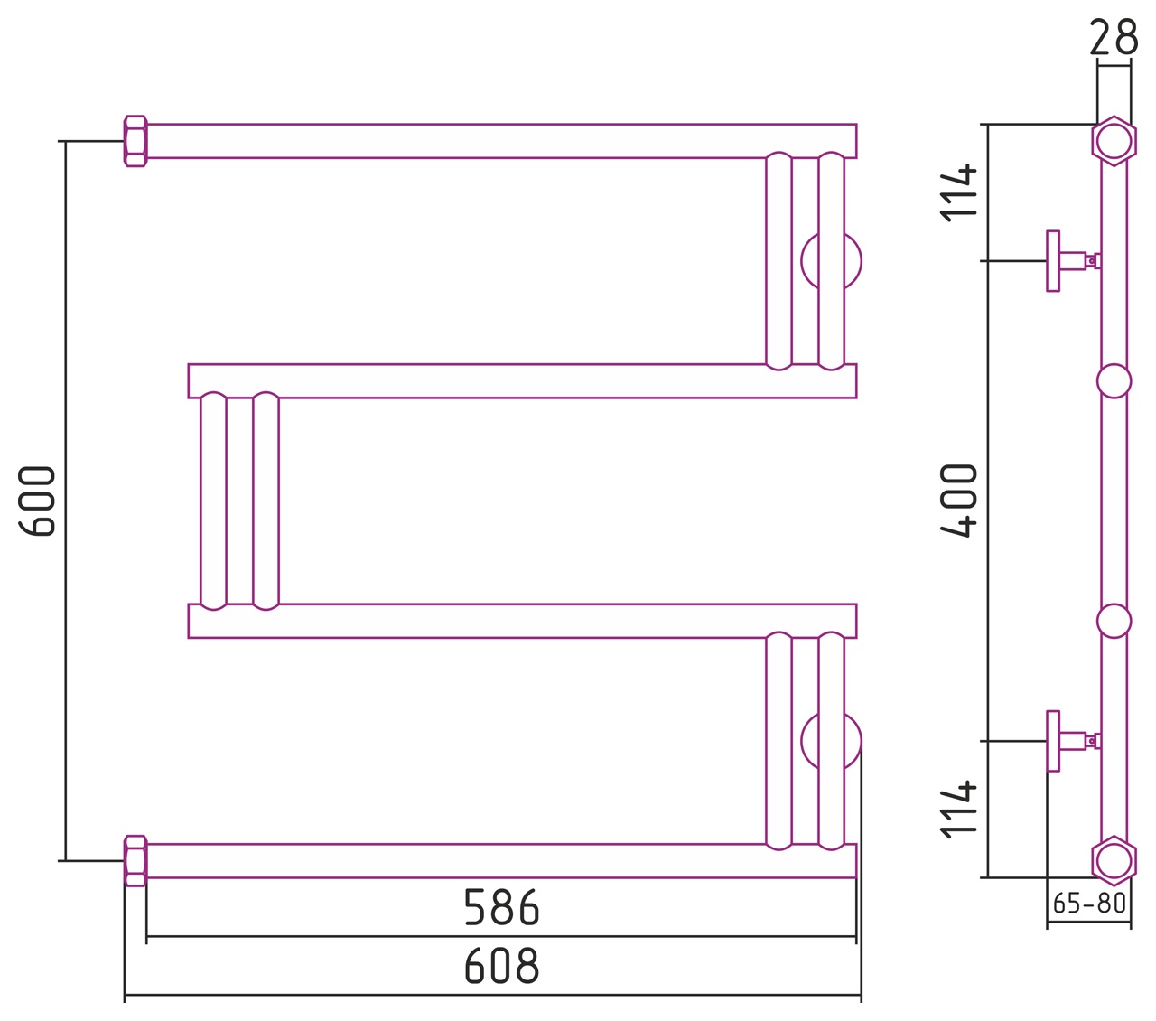 Водяной полотенцесушитель Сунержа Хорда 600x195