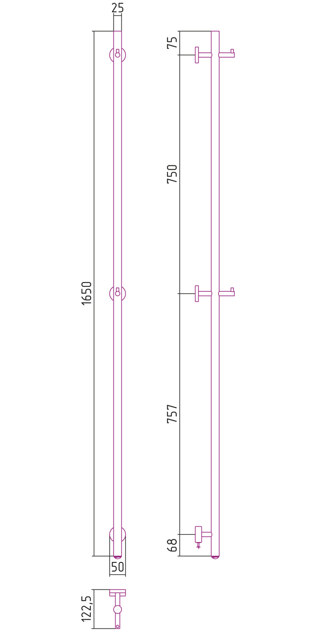 Полотенцесушитель Электрический Сунержа 50мм 1650мм форма Нестандартная