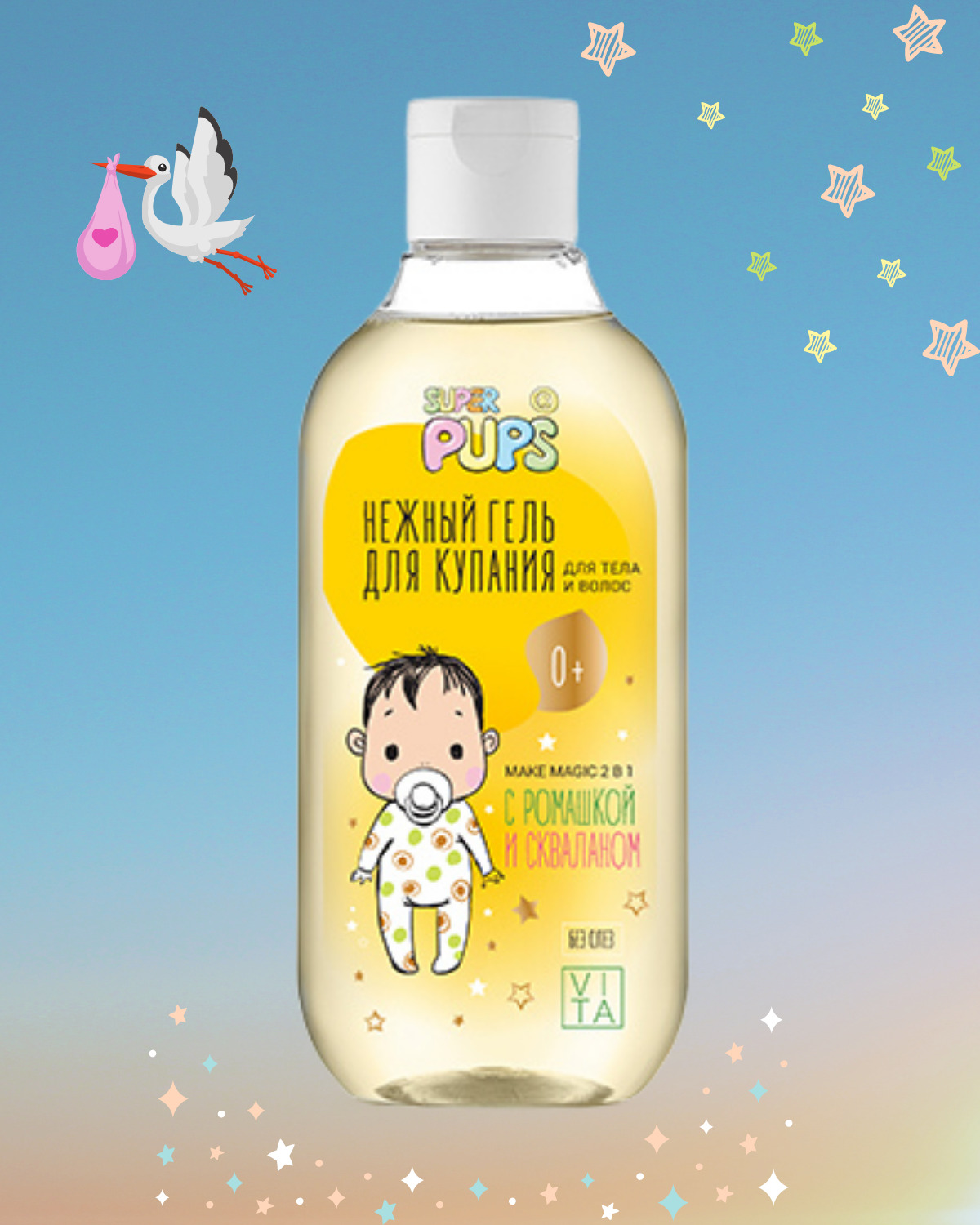 Super PUPS Нежный гель для купания (0+), с ромашкой и скваланом, 300 мл