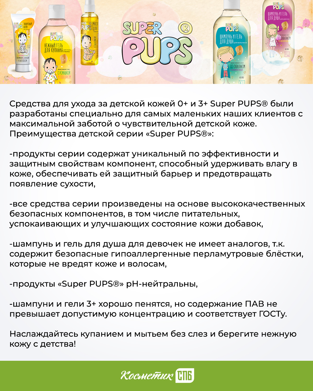 SUPER PUPS шампунь и гель для душа для мальчиков 3+, 300 мл