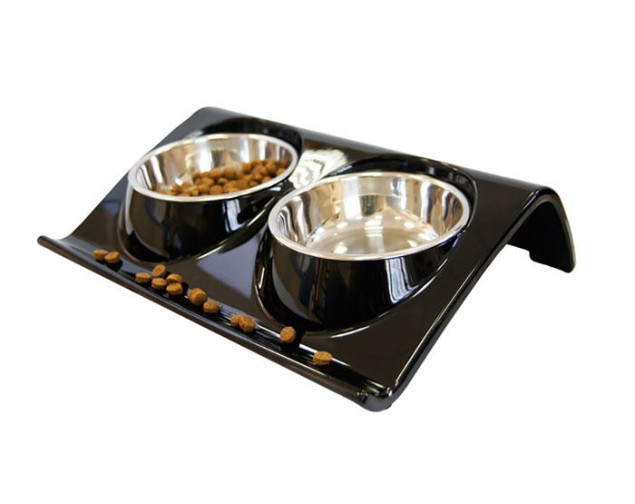 Миски на подставке Миска двойная Superdesign Элеганс на меламиновой подставке черная 2 х 0,16 л