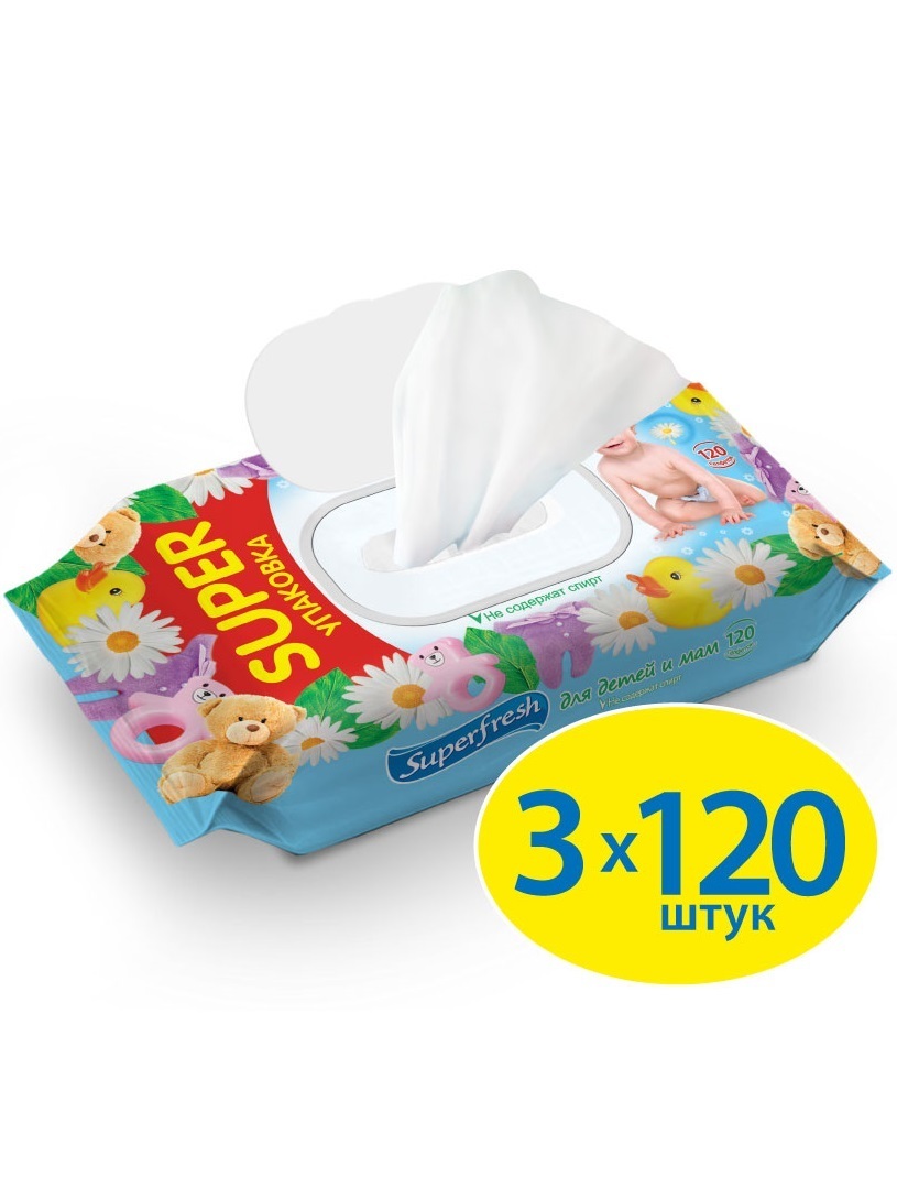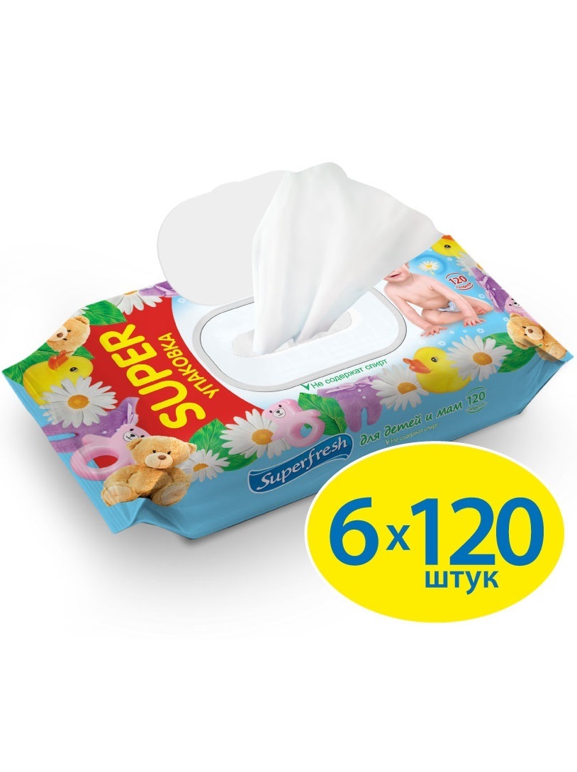 Влажные салфетки Superfresh Baby для детей и мам с ромашкой