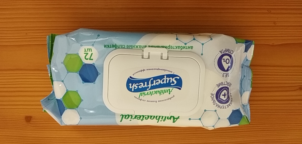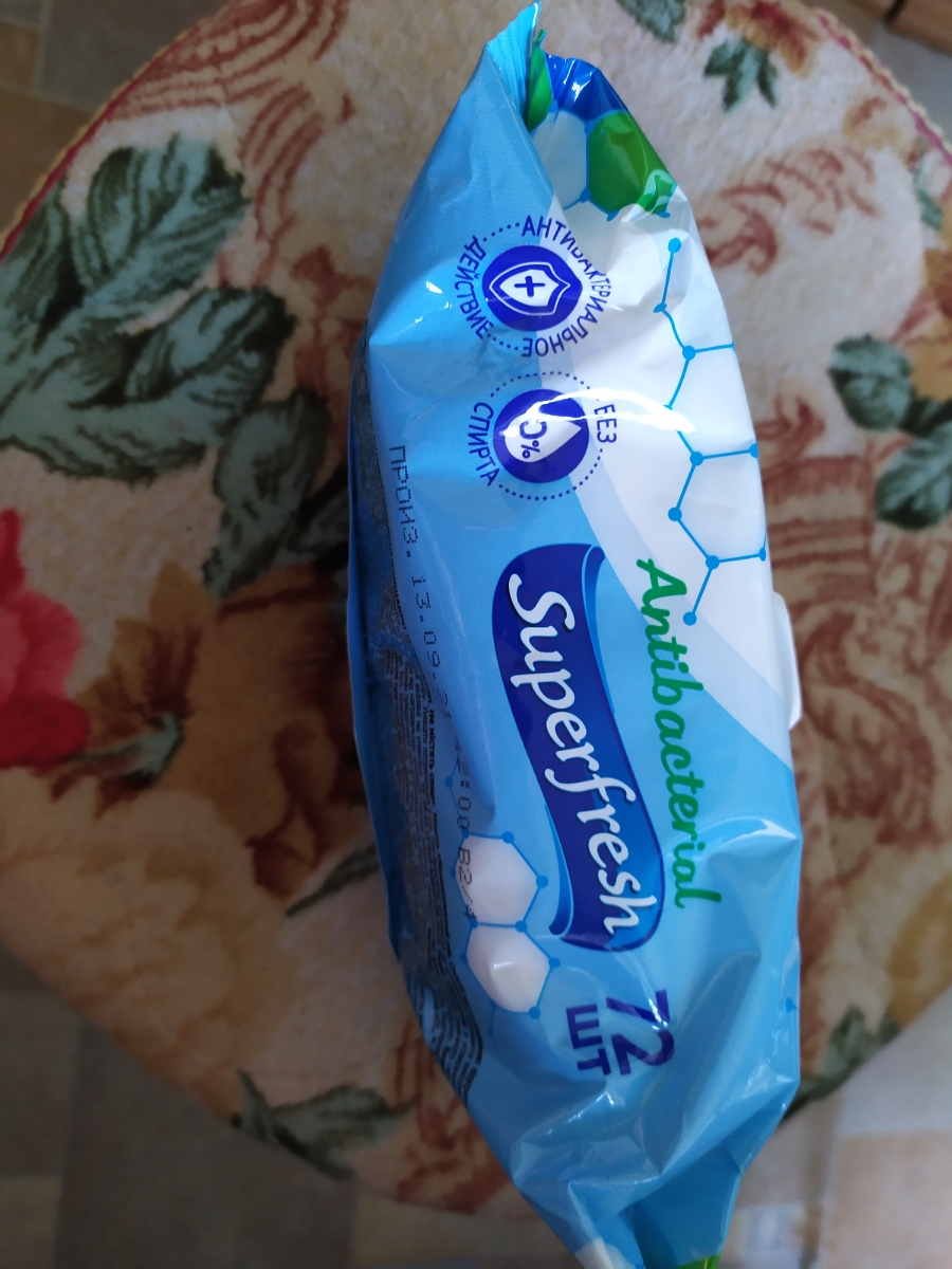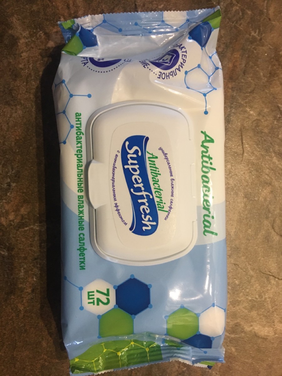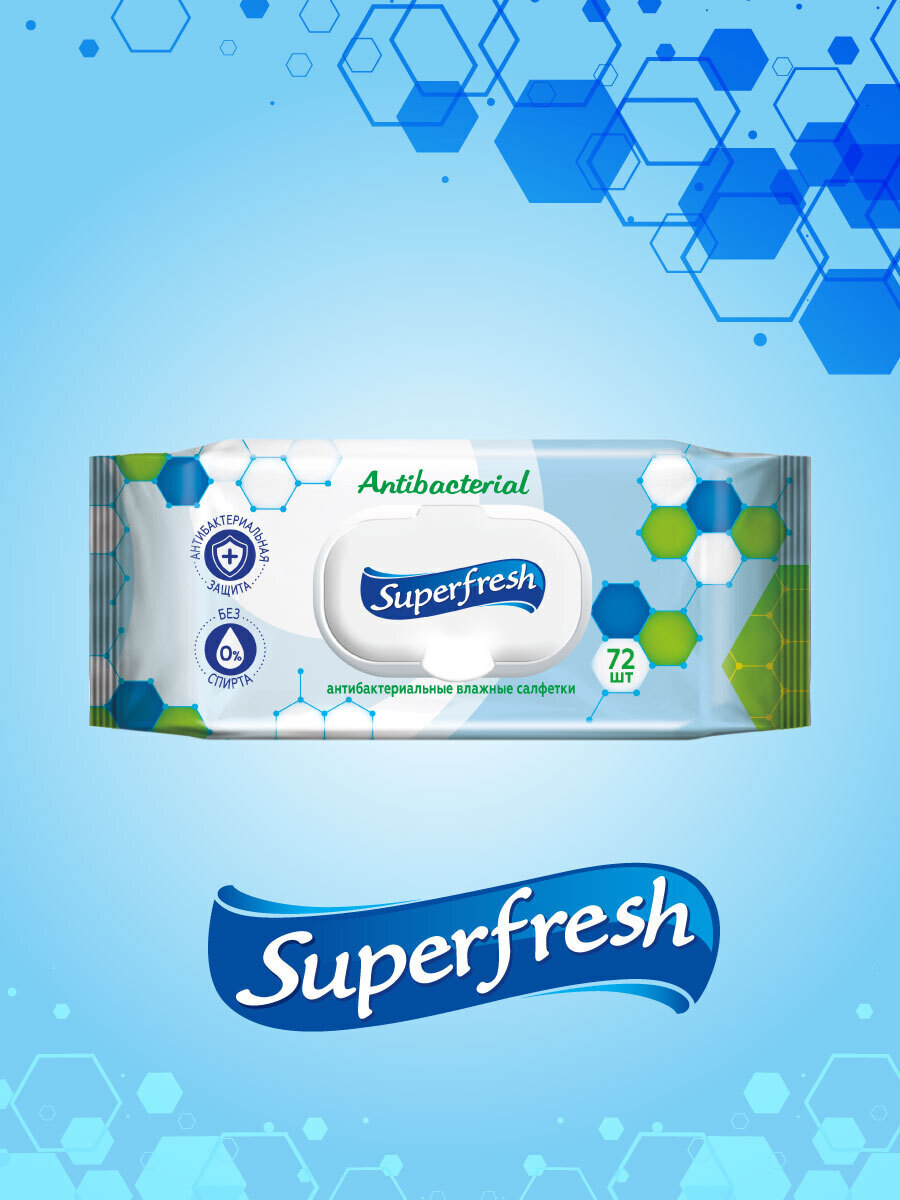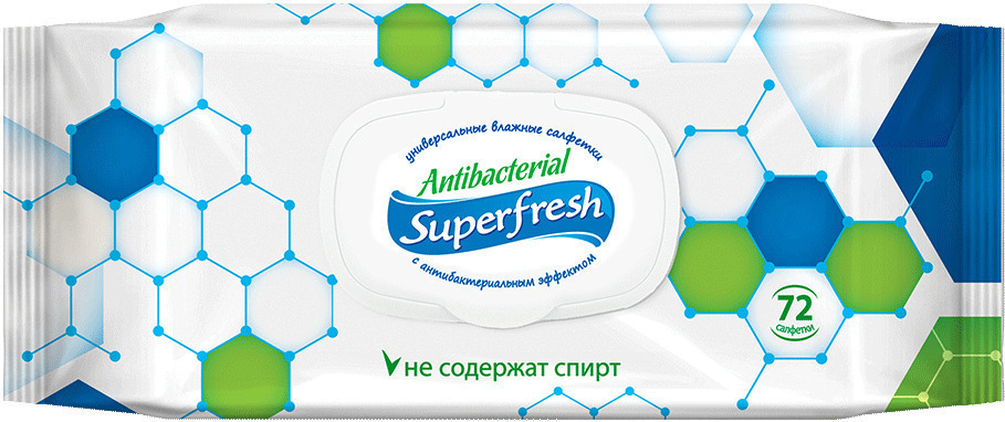 Superfresh Антибактериальные влажные салфетки, 72 шт., с клапаном.