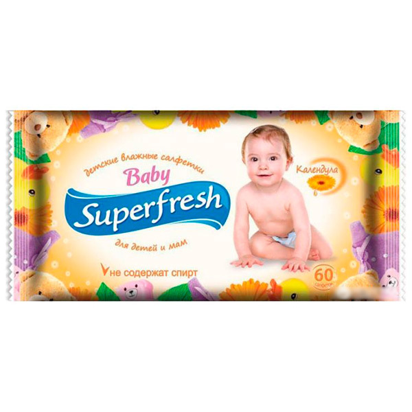 SUPERFRESH Влажные салфетки для детей и мам с календулой 60шт в уп