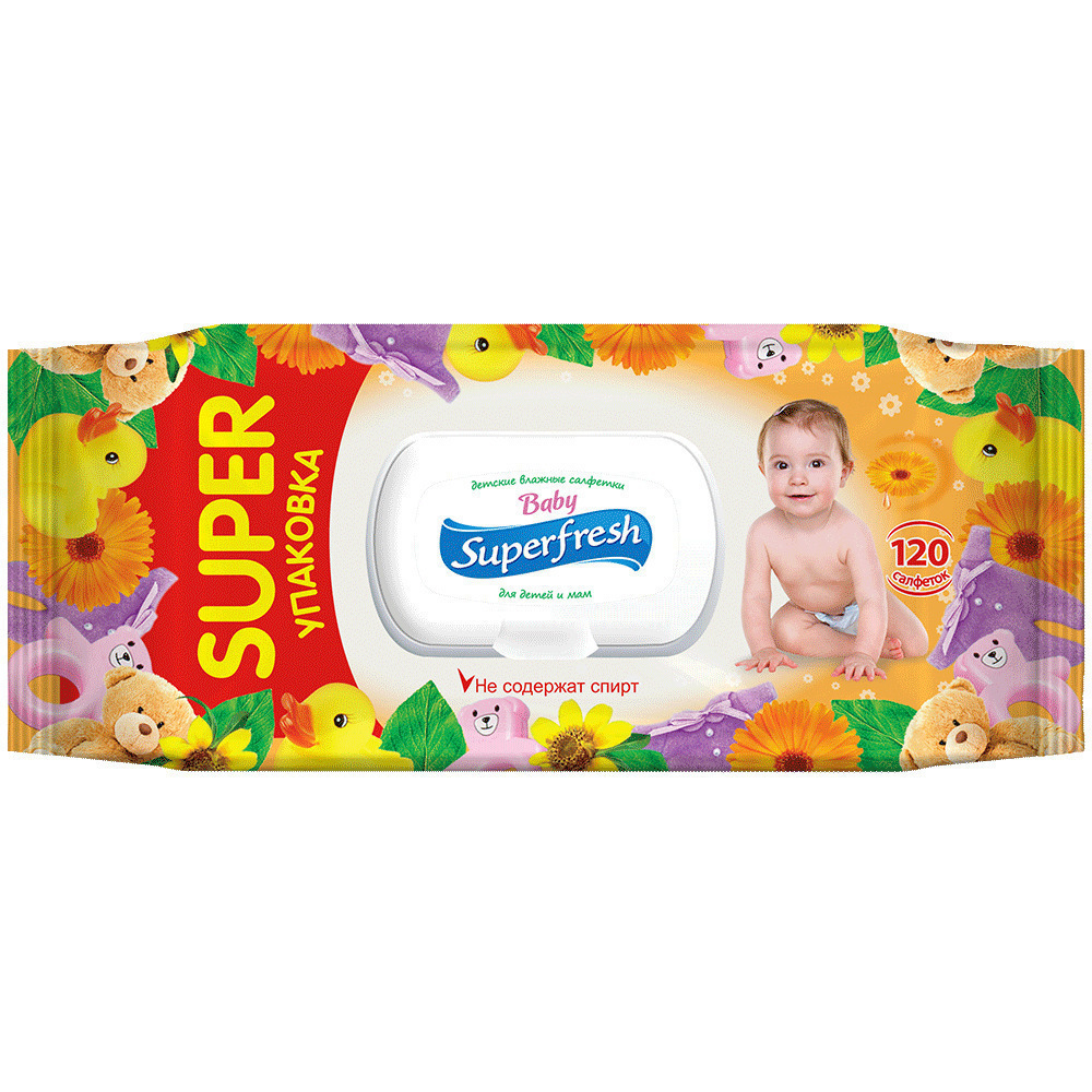 Superfresh Влажные салфетки детские 120 шт., с календулой, с клапаном