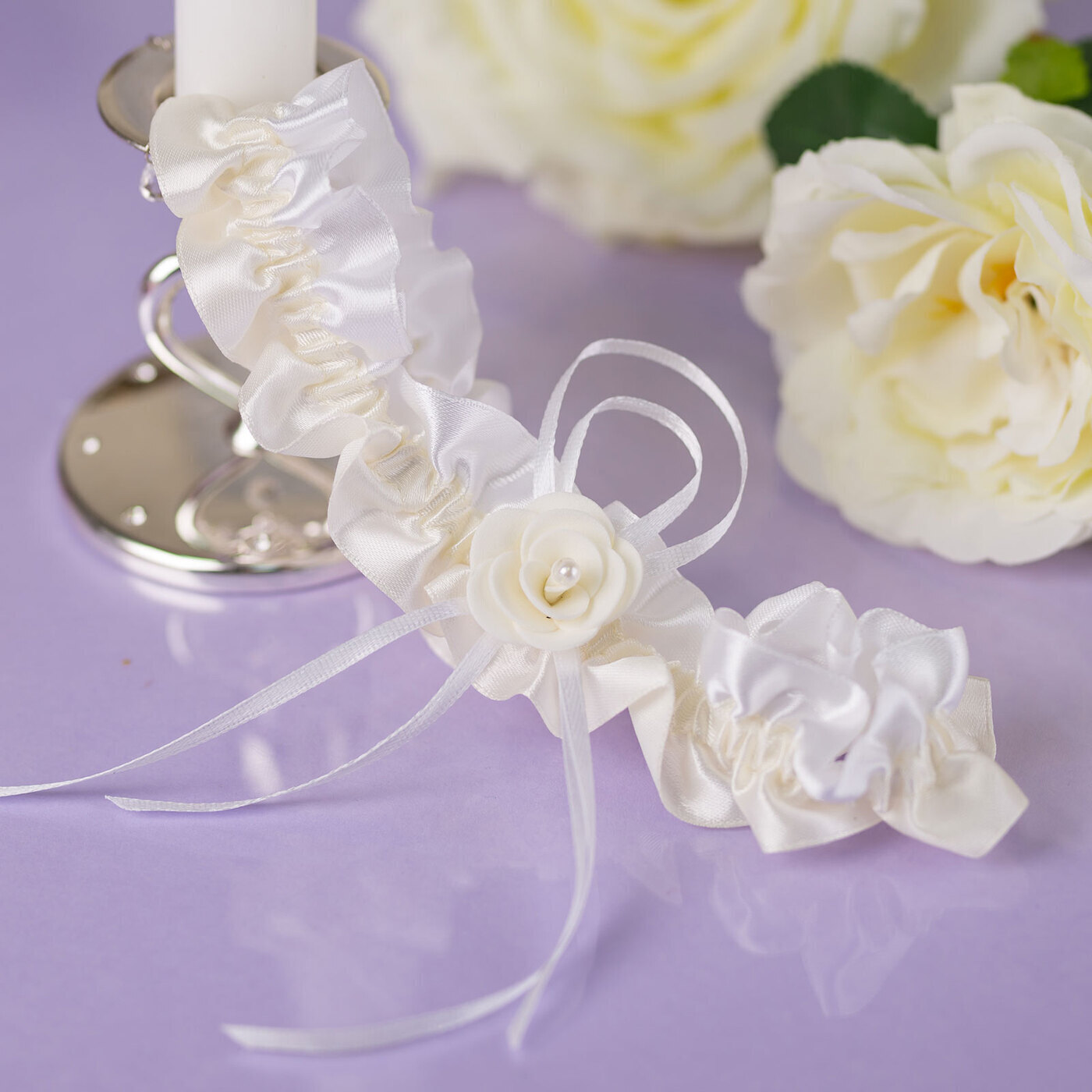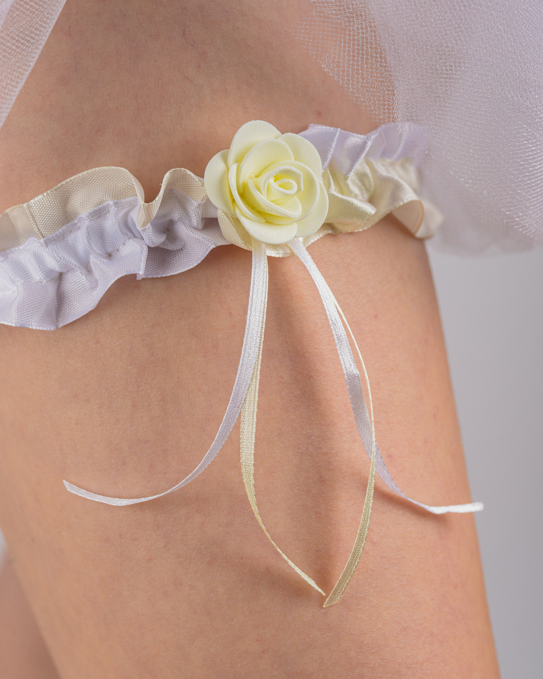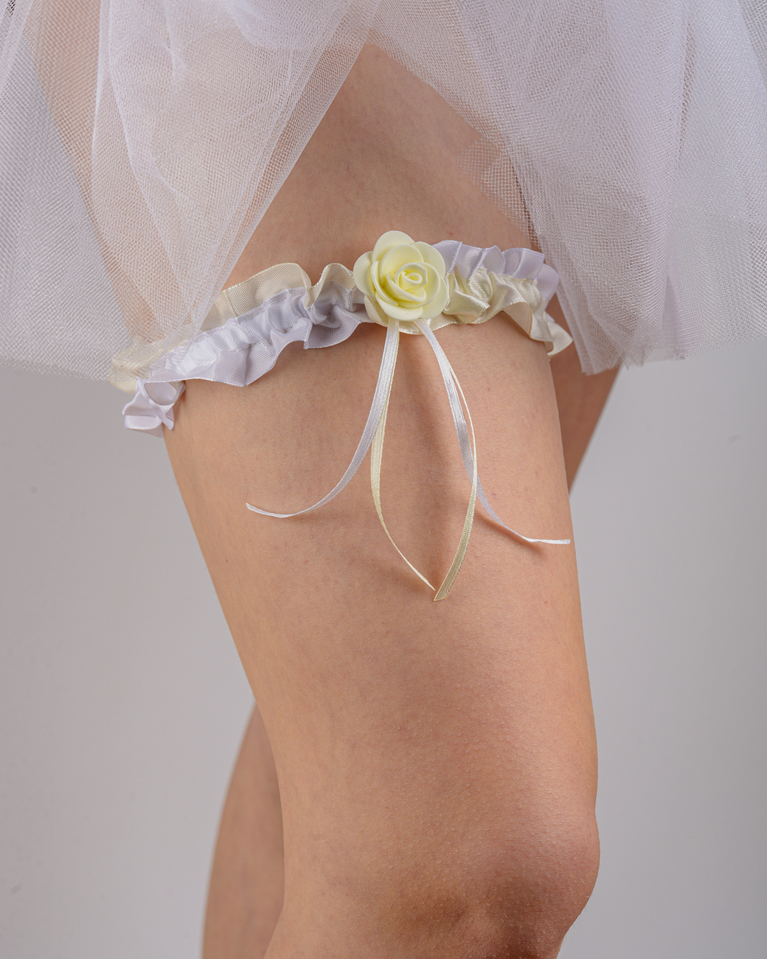 Двухцветная лента - рюш из атласной ленты на капот свадебной машины, бело-голубая, 3 метра