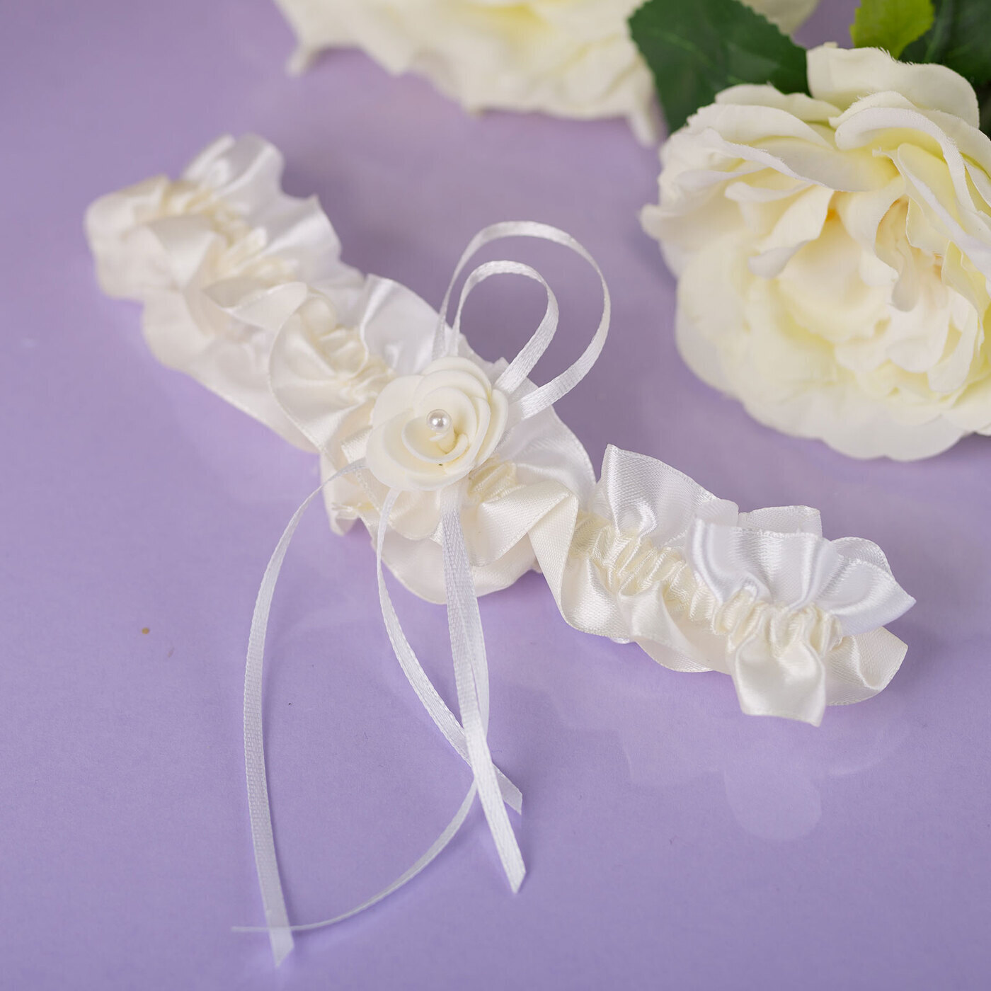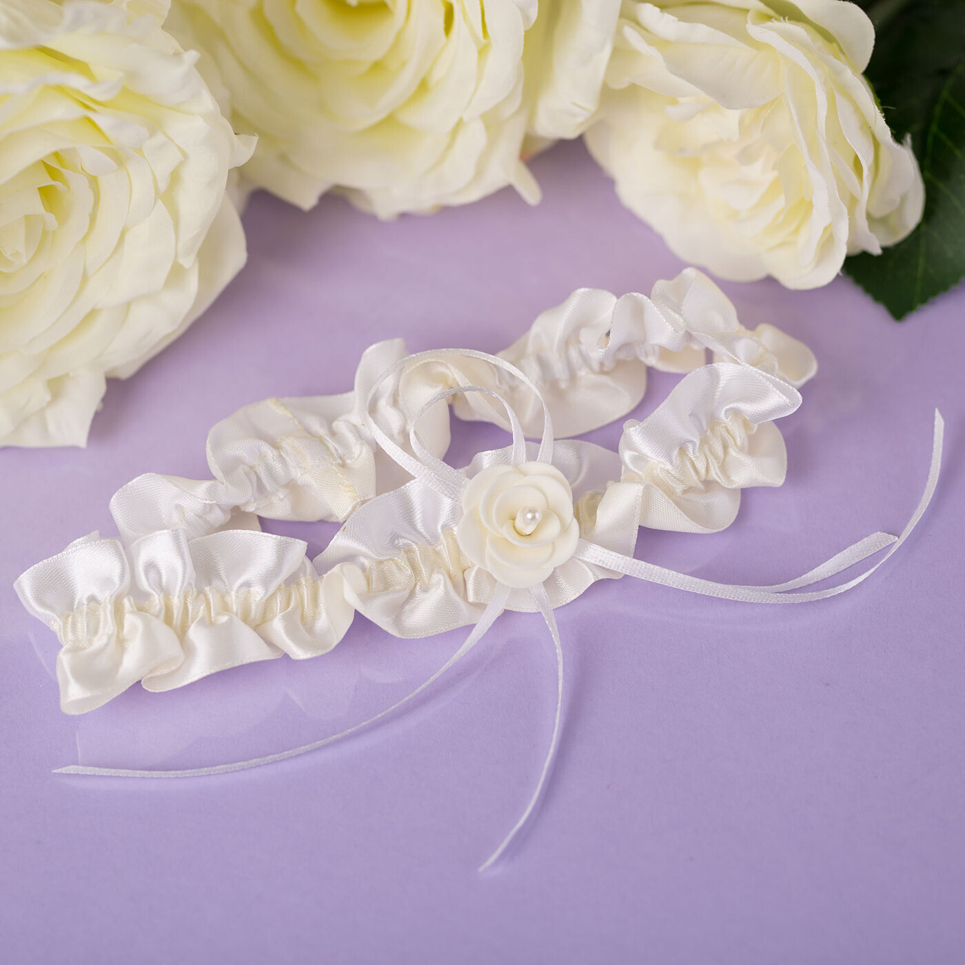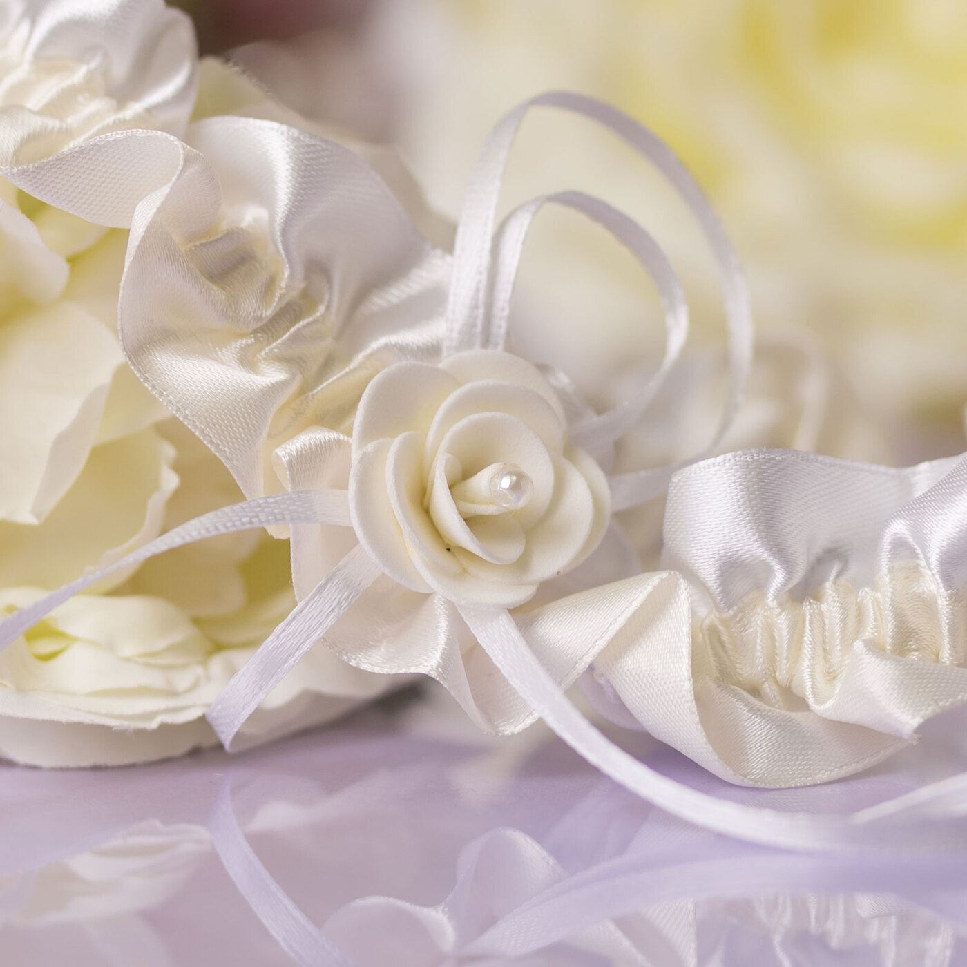 Двухцветная лента - рюш из атласной ленты на капот свадебной машины, бело-голубая, 3 метра