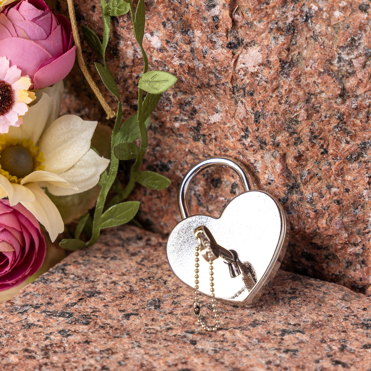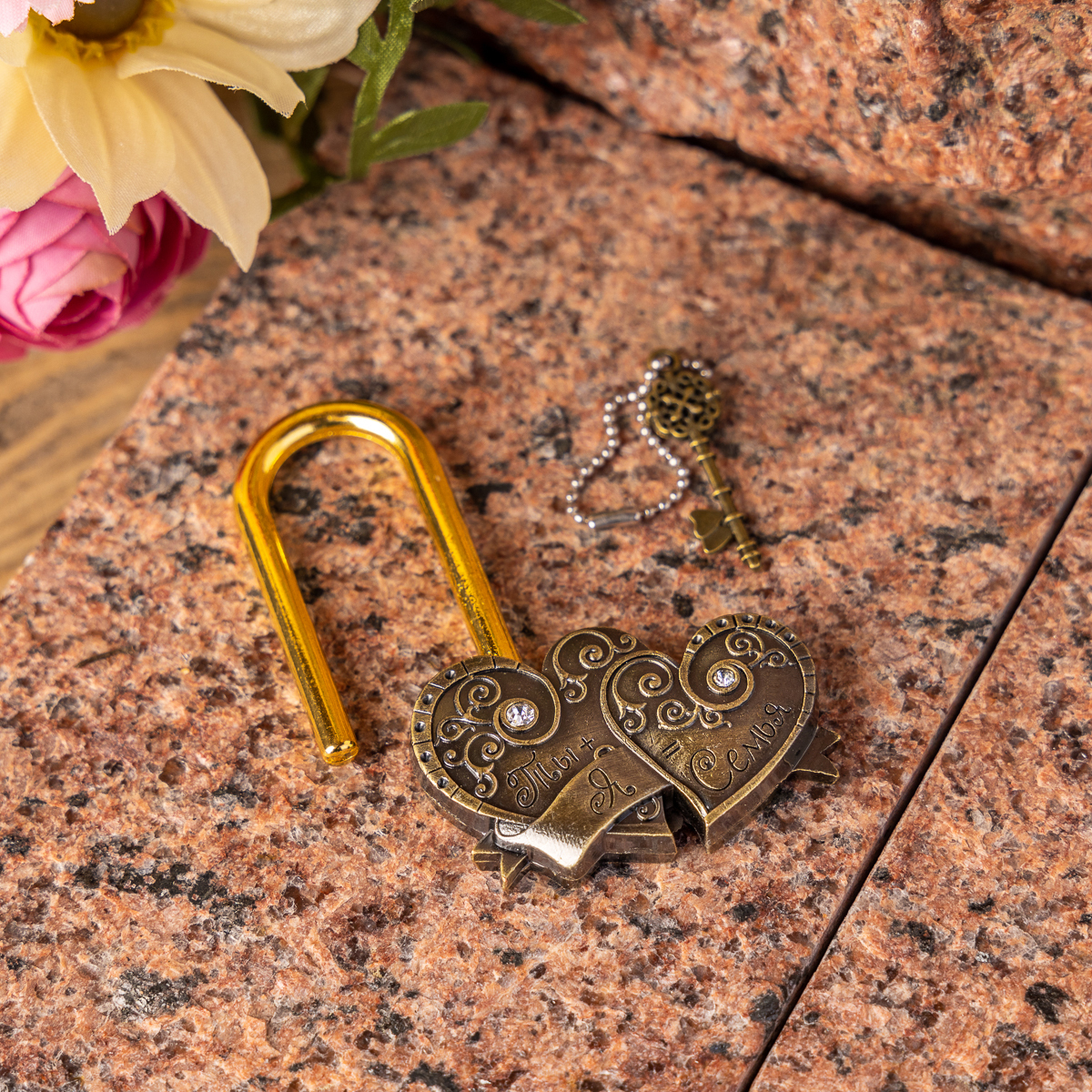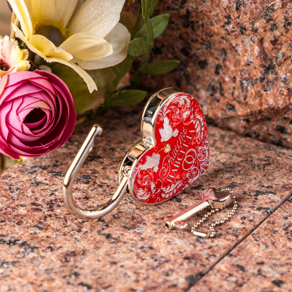 Замок любви красный "Вместе навсегда" в форме сердца с голубями, кольцами и узорами