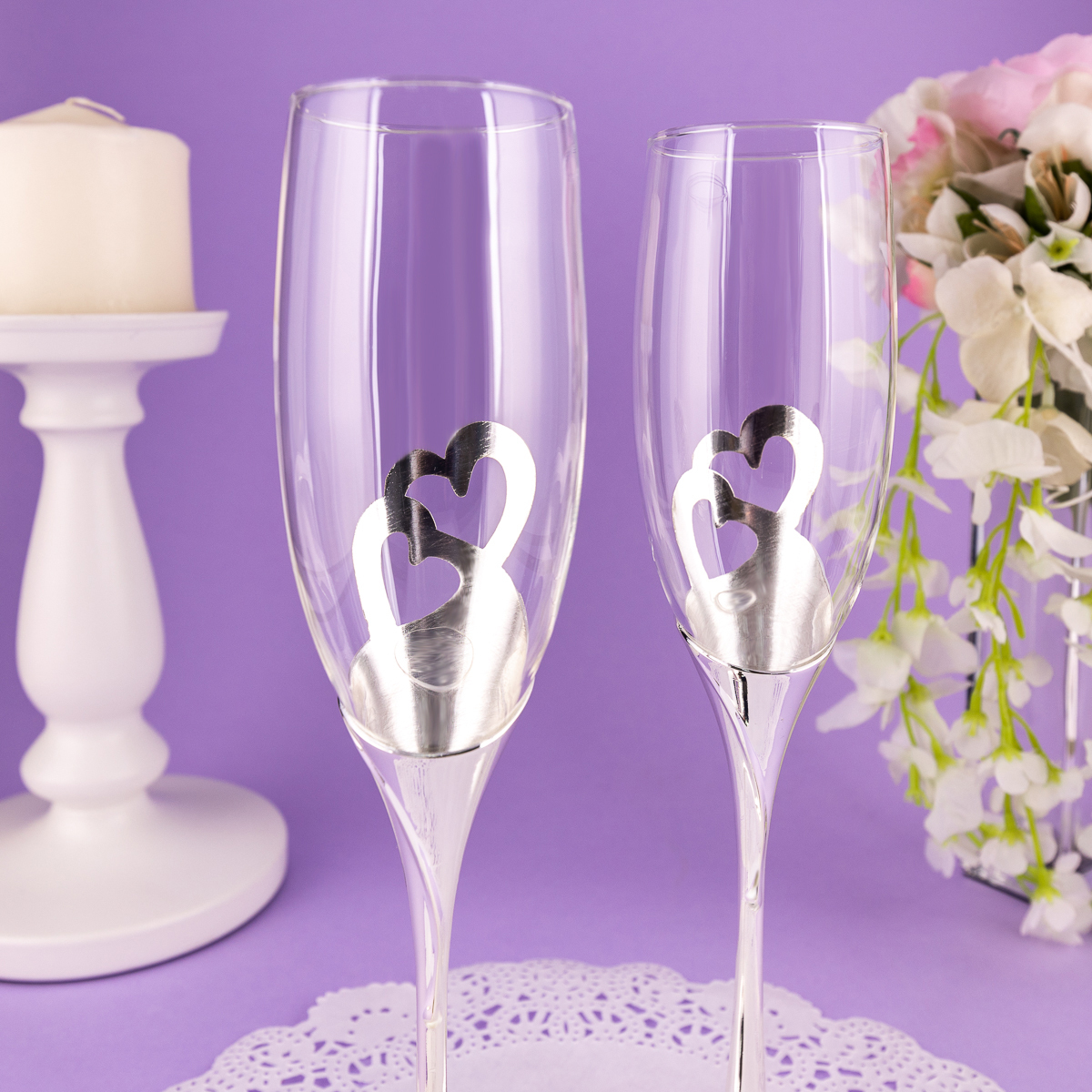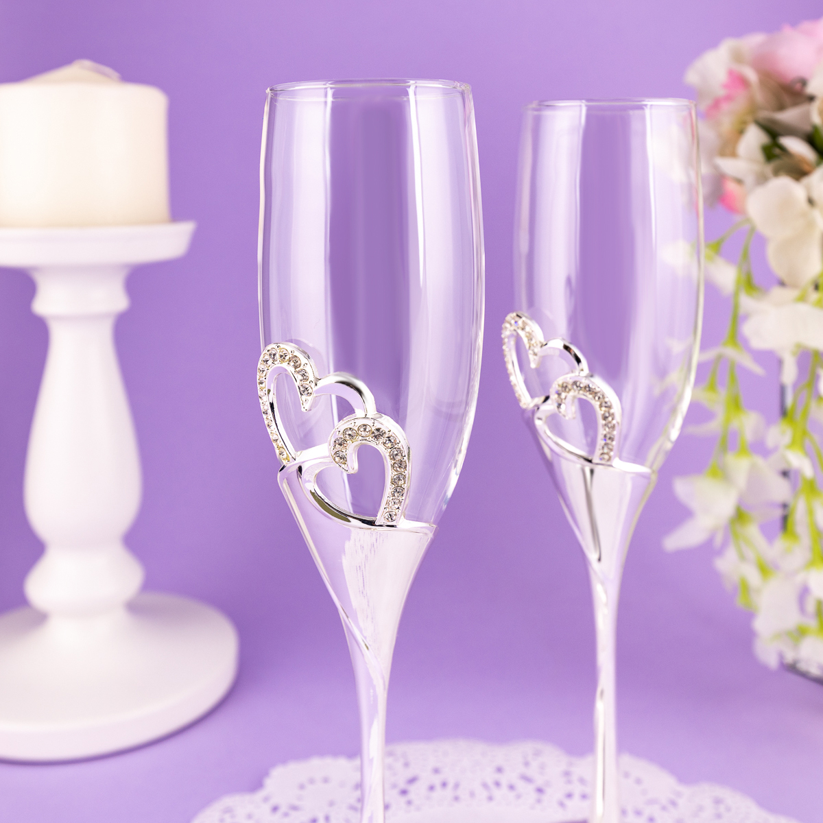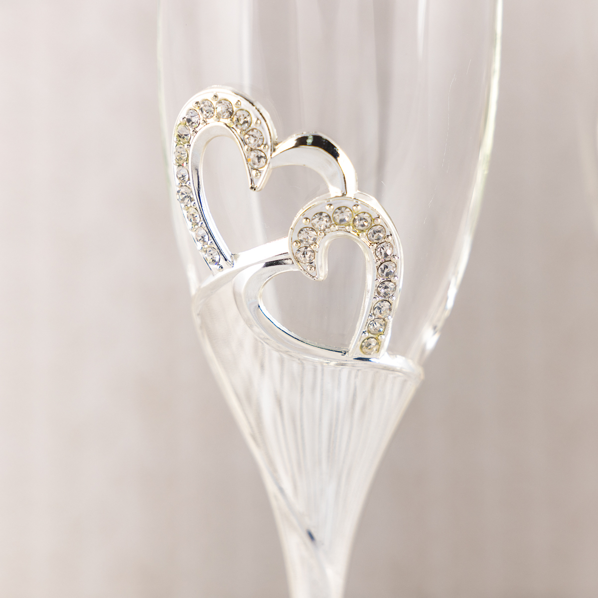 Бокалы для молодоженов на металлических ножках серебряного цвета, с сердцами из страз, 2 штуки