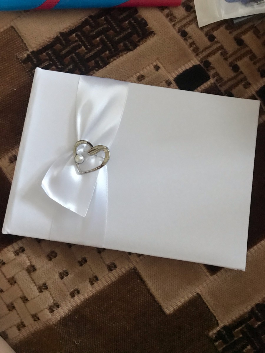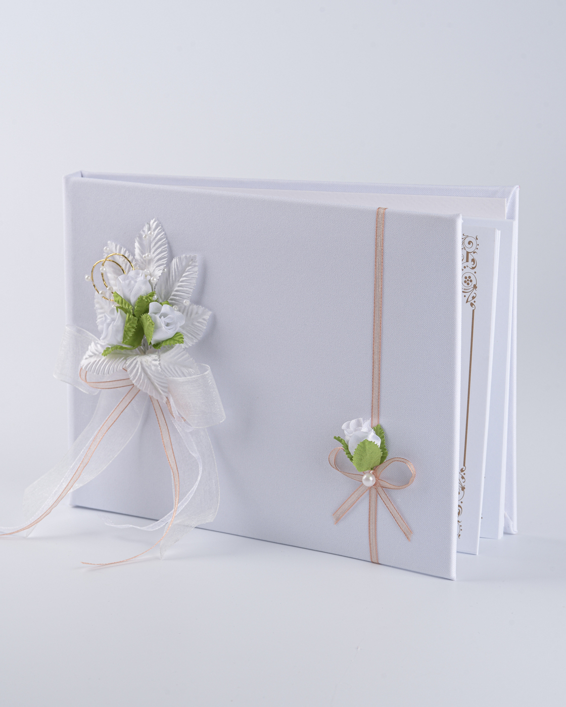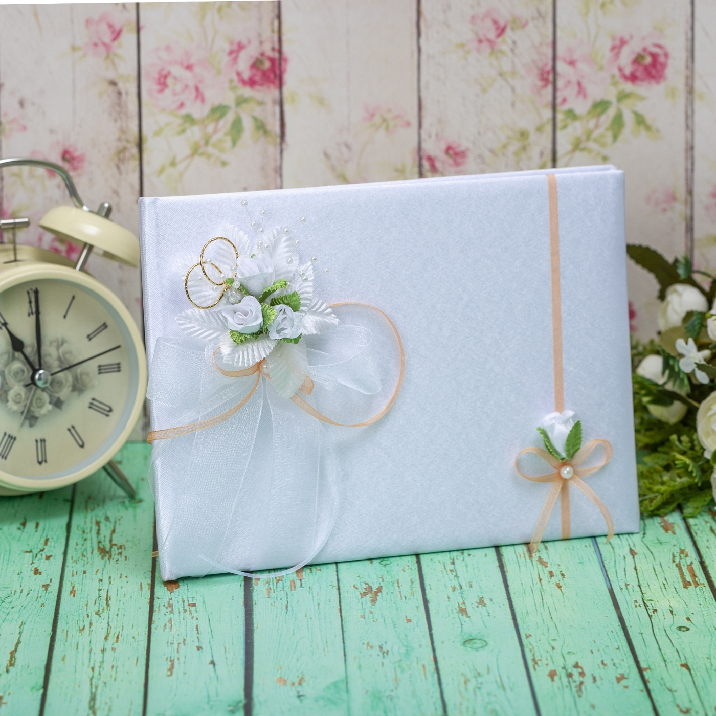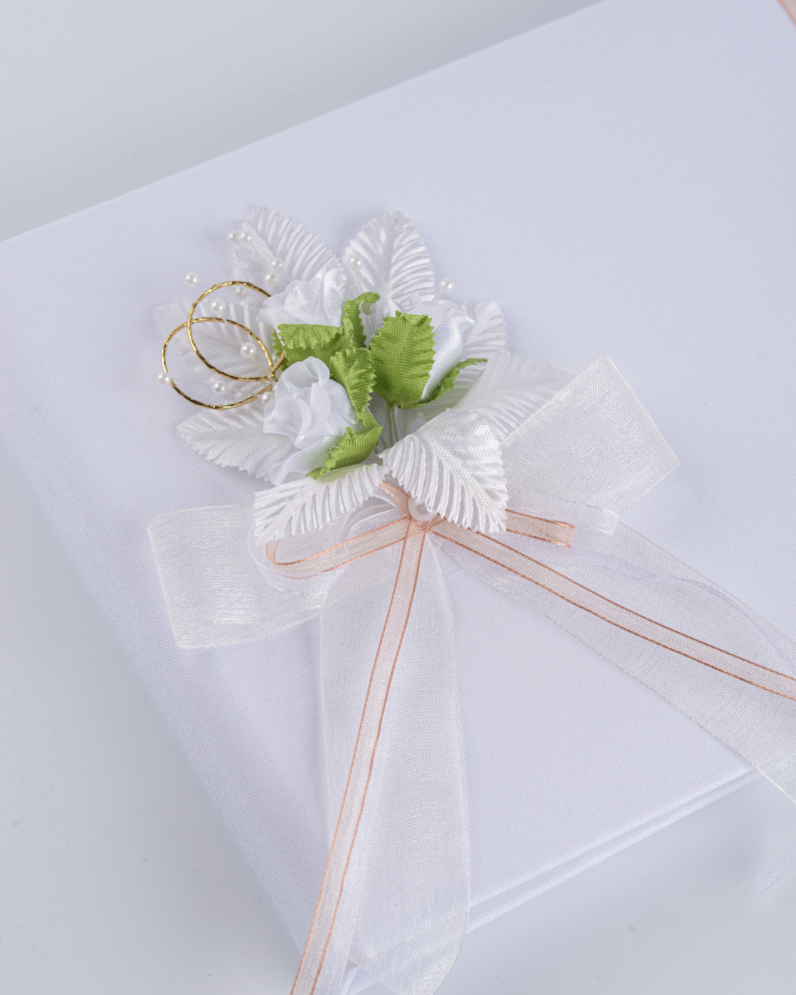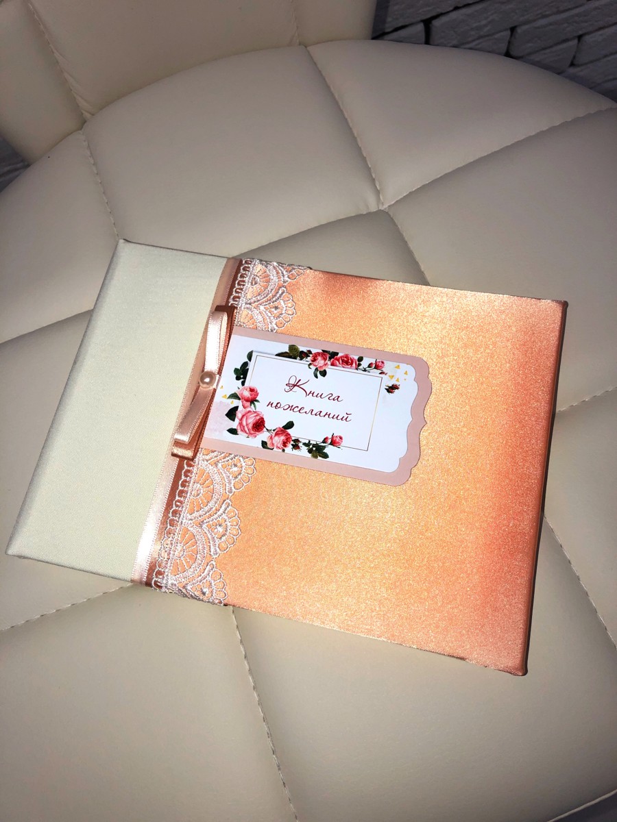 Свадебная книга пожеланий для молодоженов "Бретань айвори" атласная с кружевом и бантом