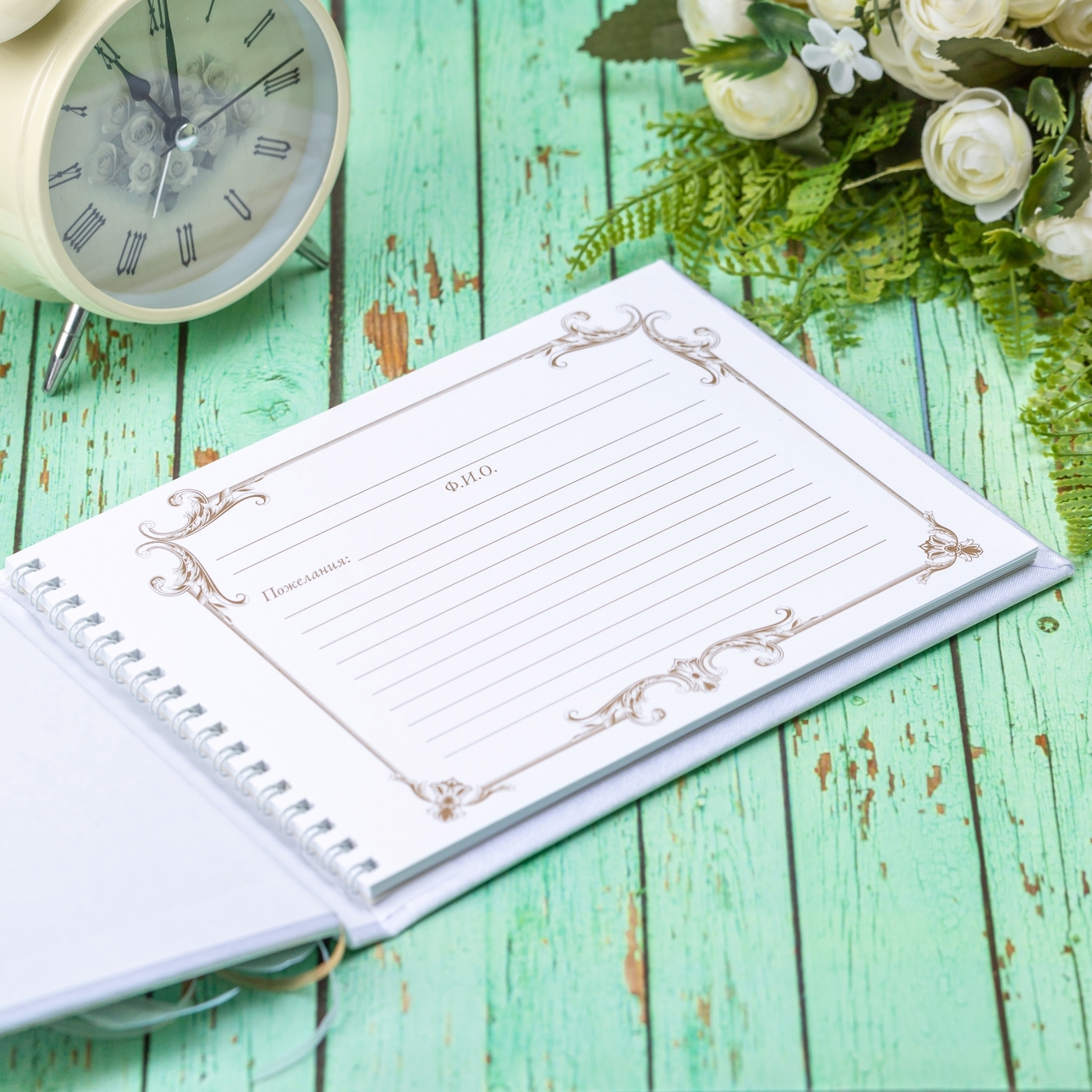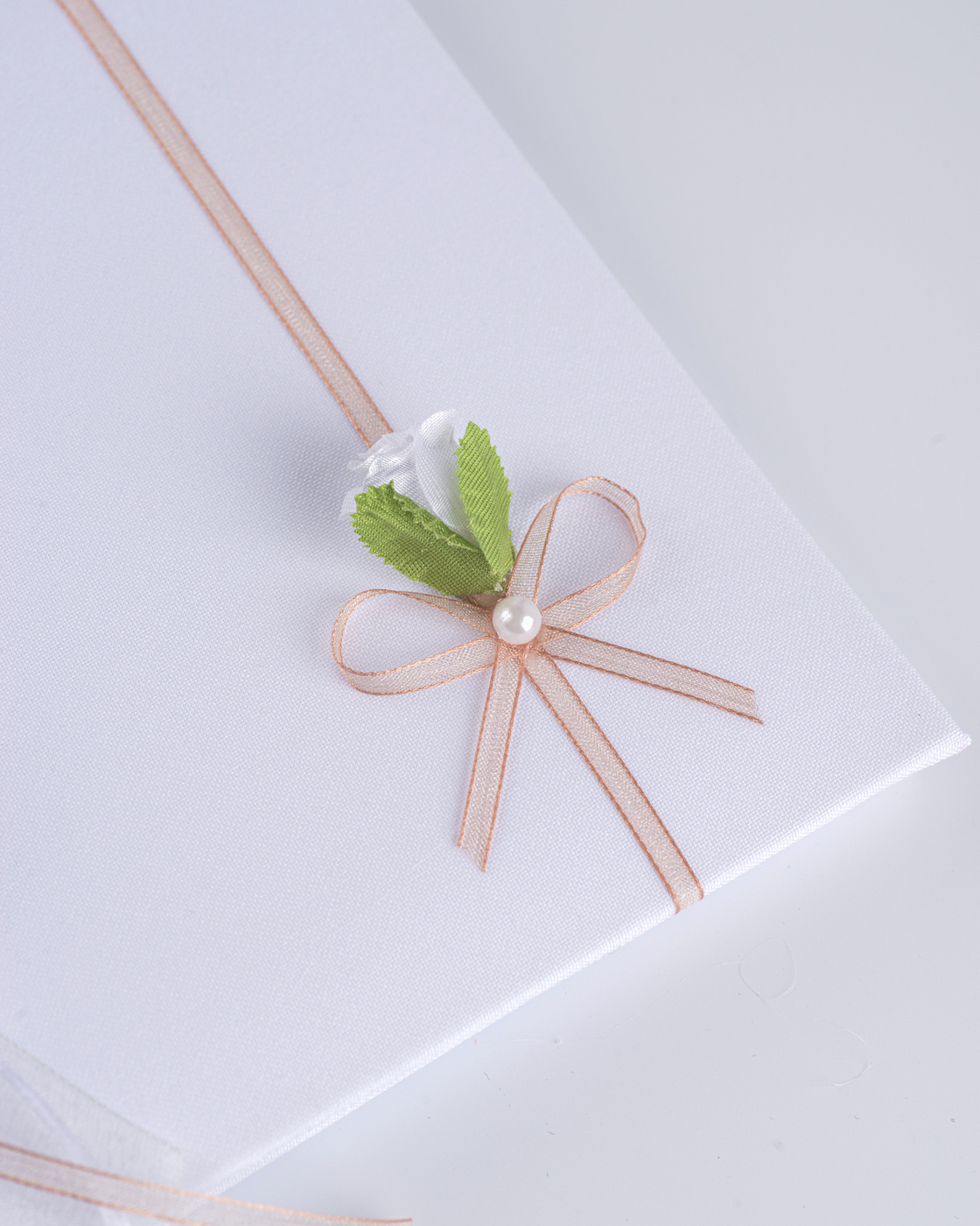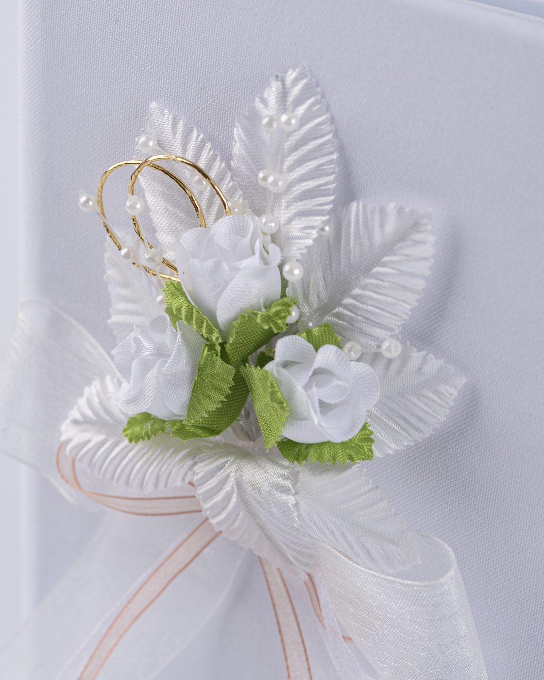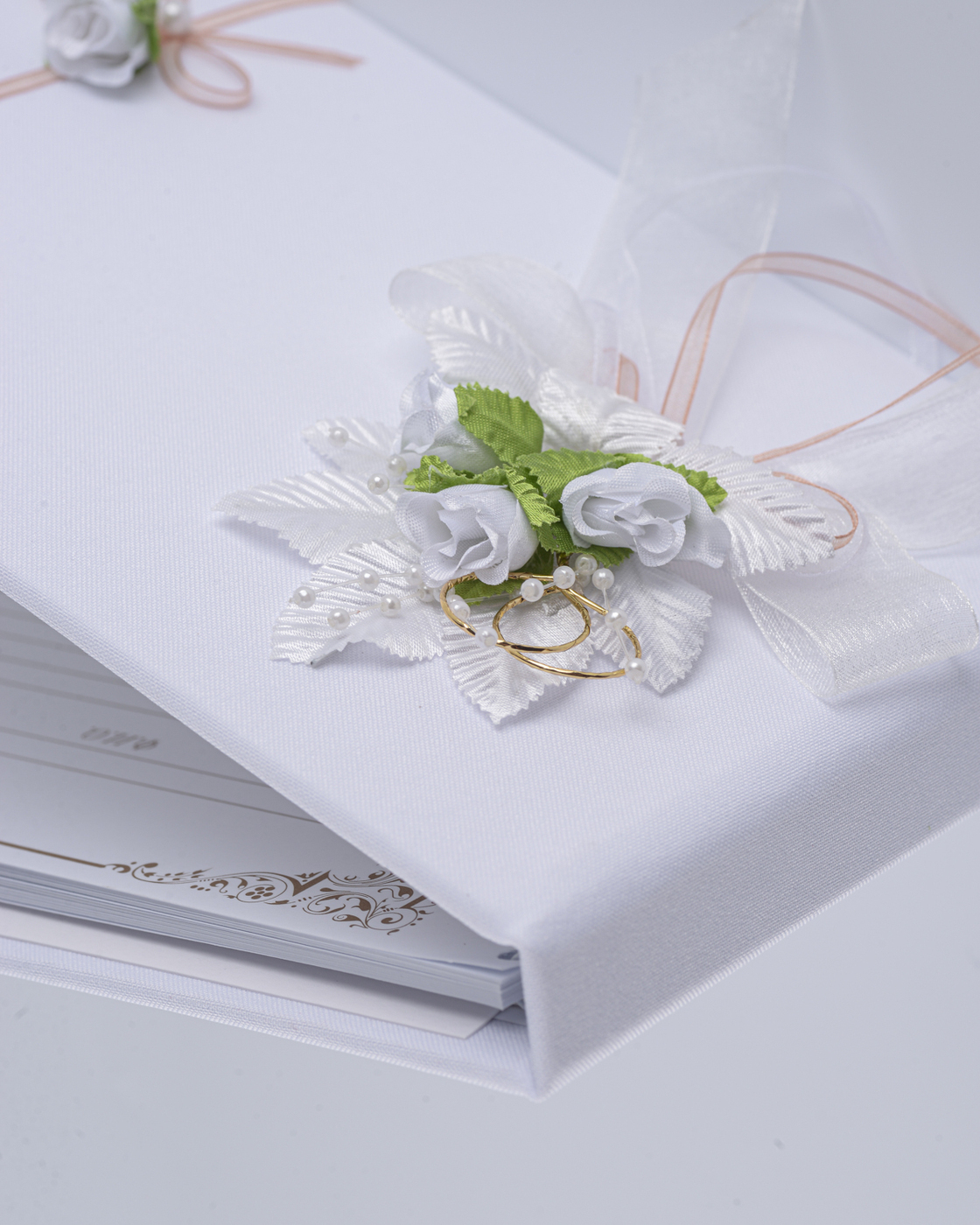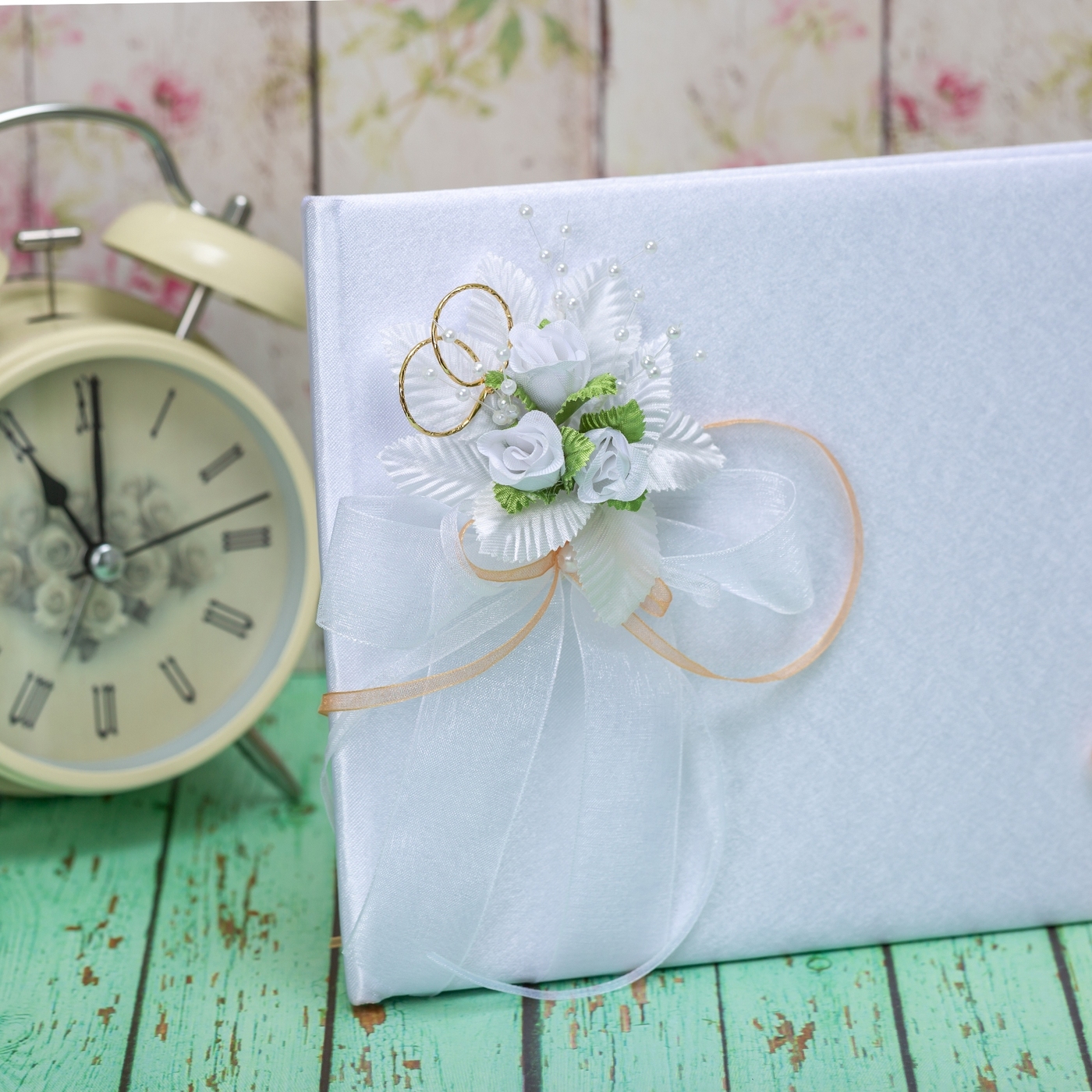 Свадебная книга пожеланий для молодоженов "Бретань айвори" атласная с кружевом и бантом