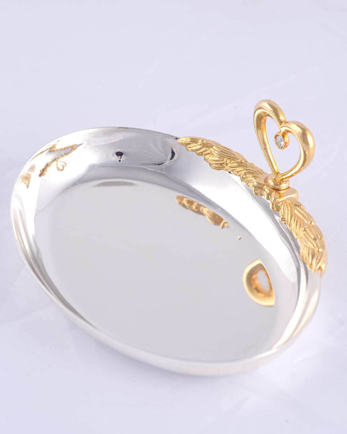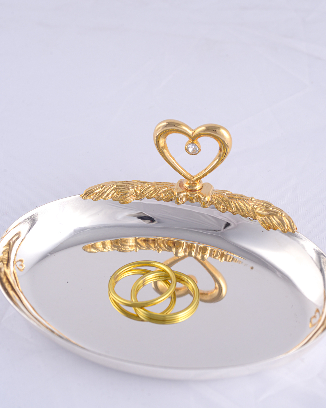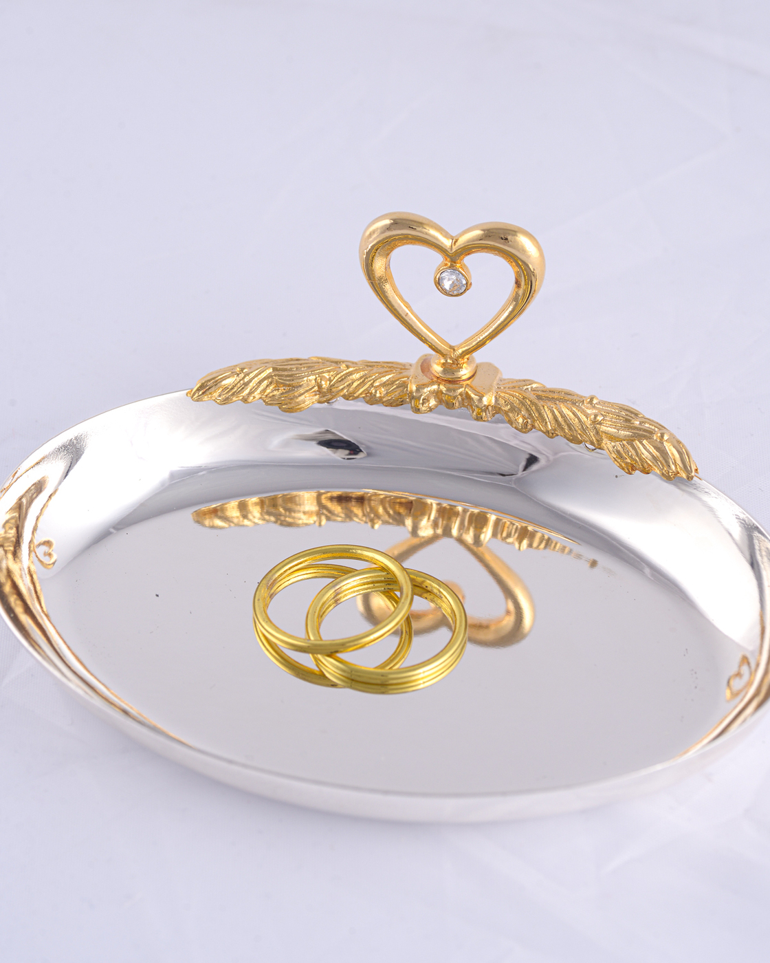 Тарелочка для обручальных колец молодоженов "Сердечко" из металла серебристого цвета