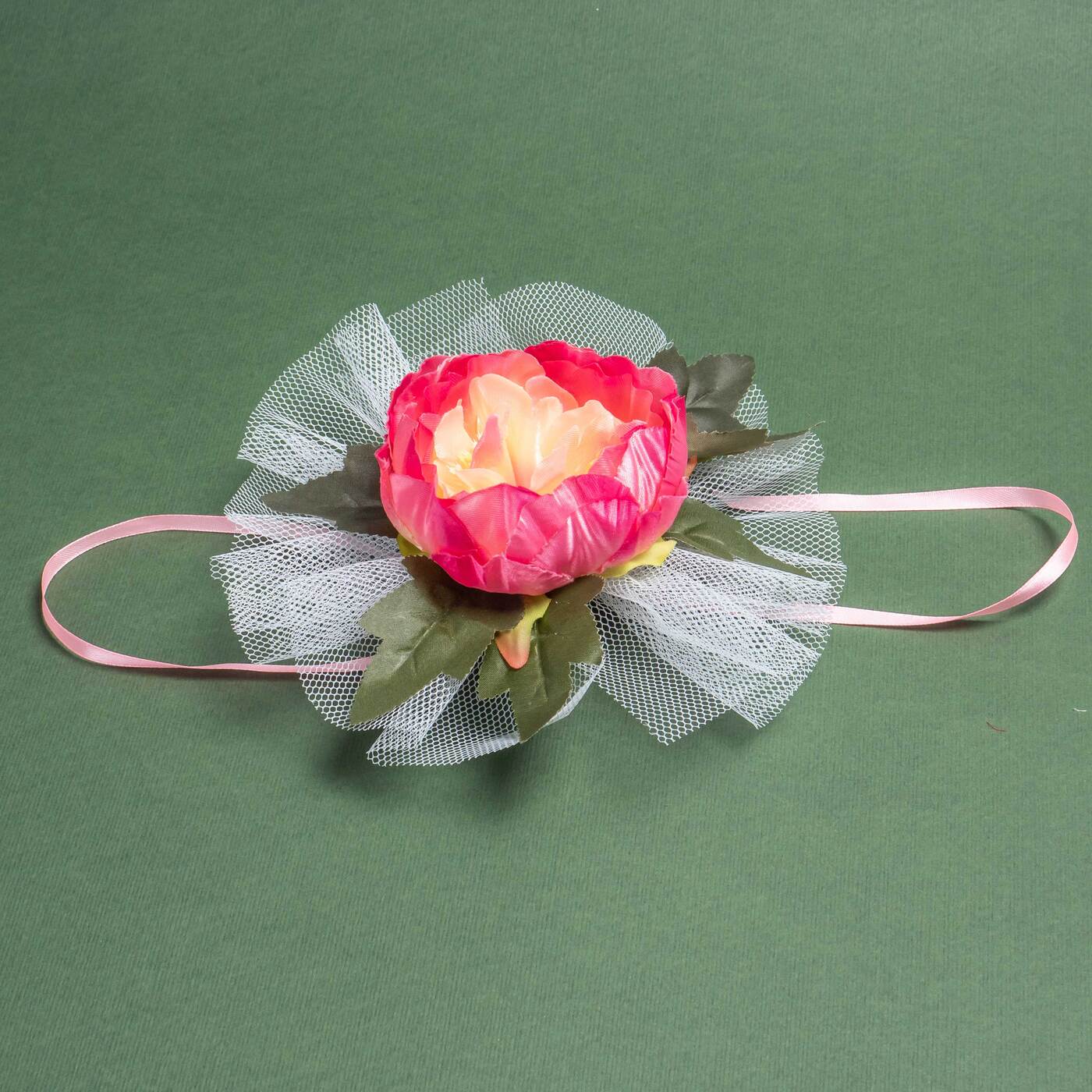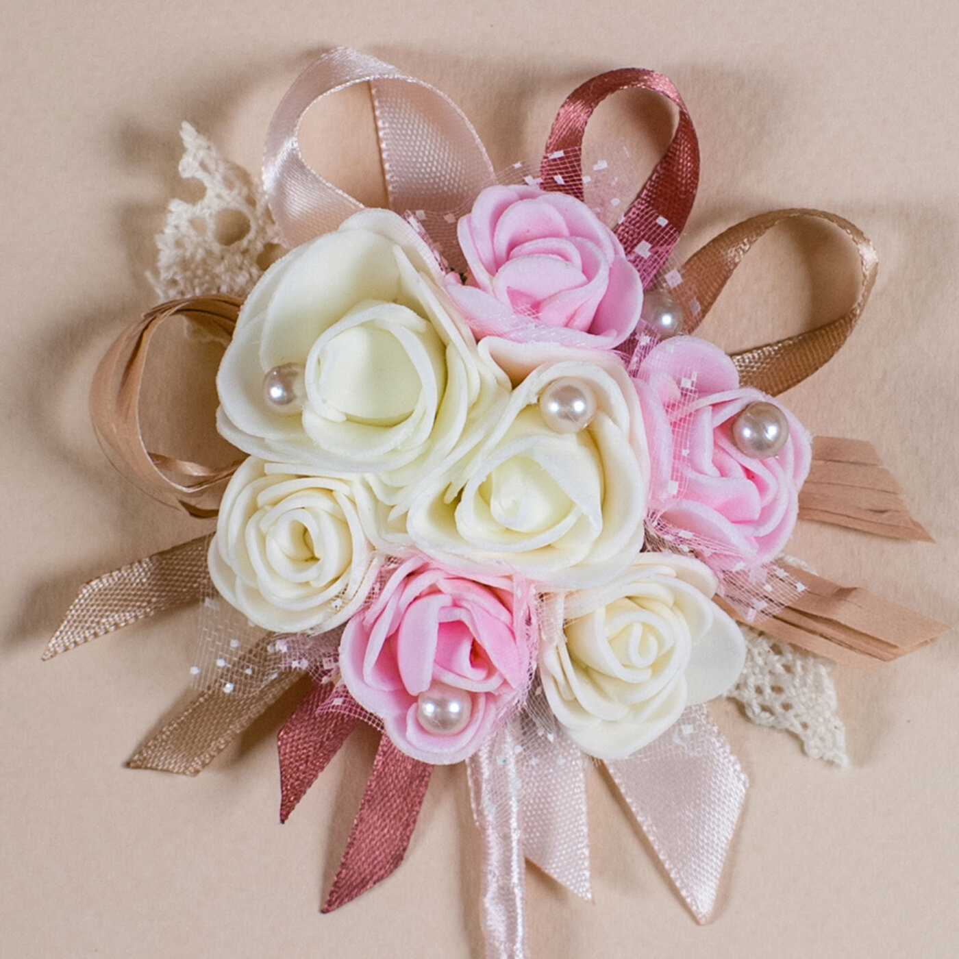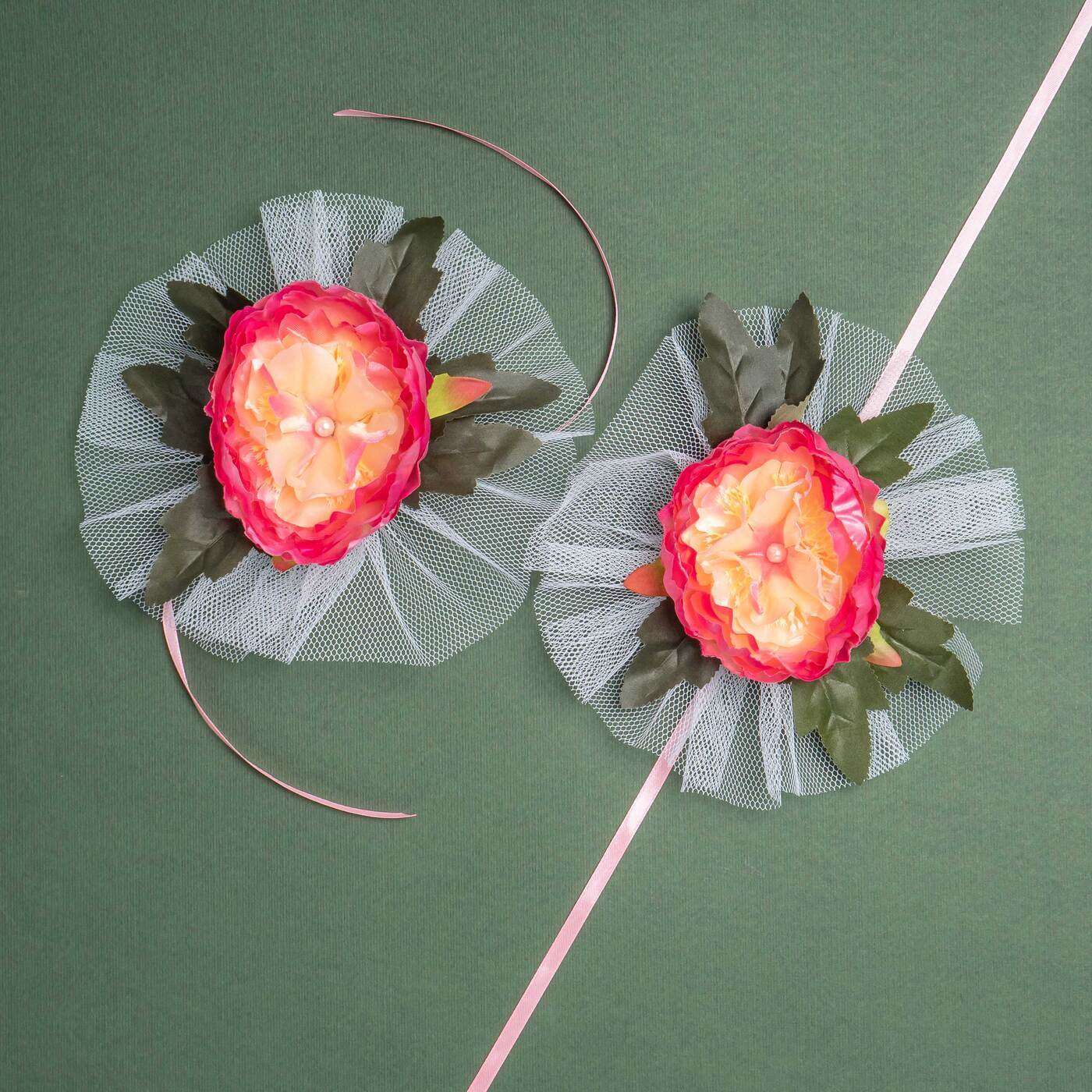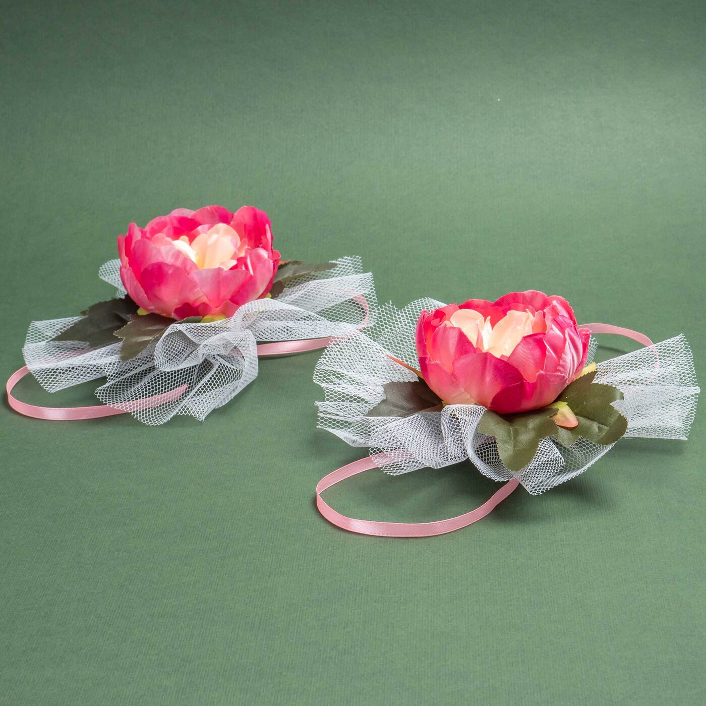 Свадебные значки - розетки для свидетелей жениха и невесты персикового цвета из атласных лент, в комплекте 2 штуки