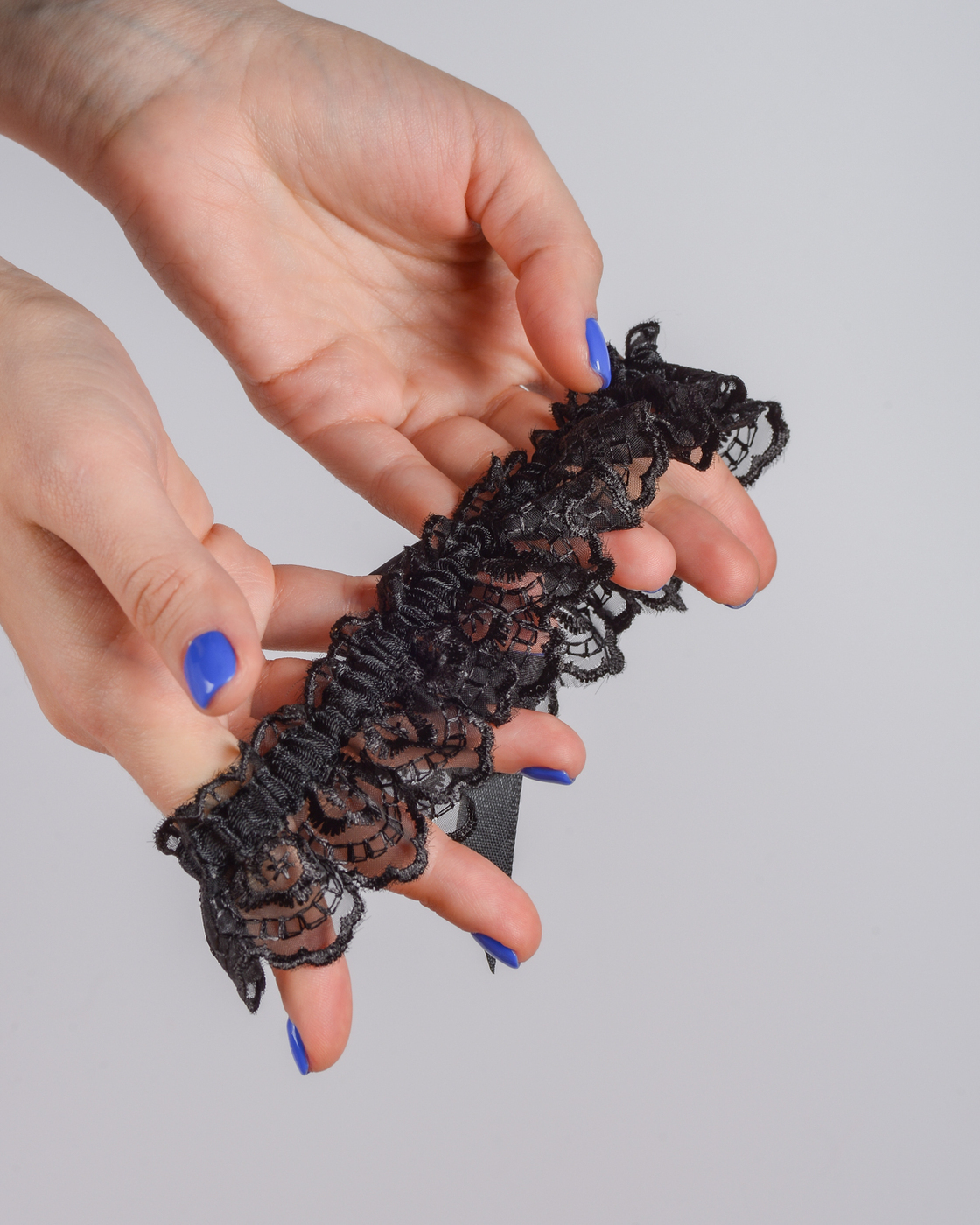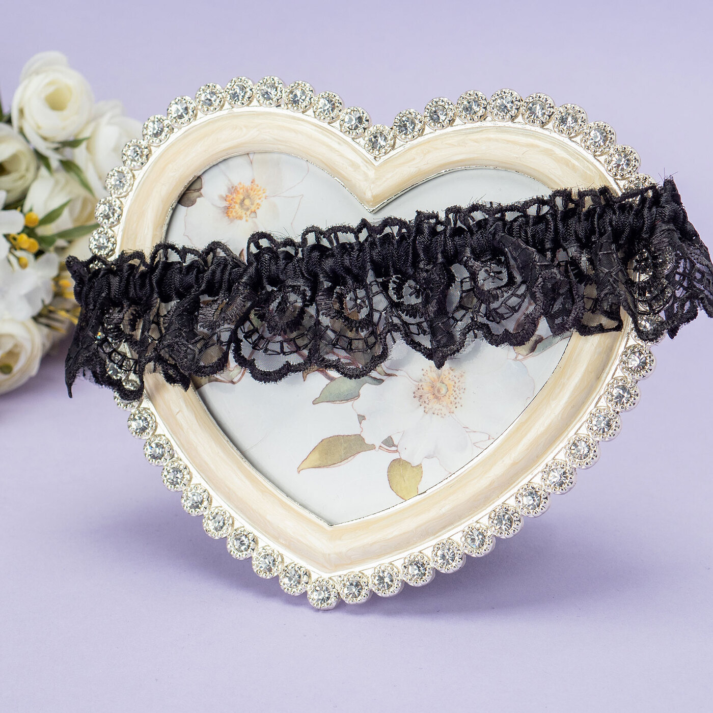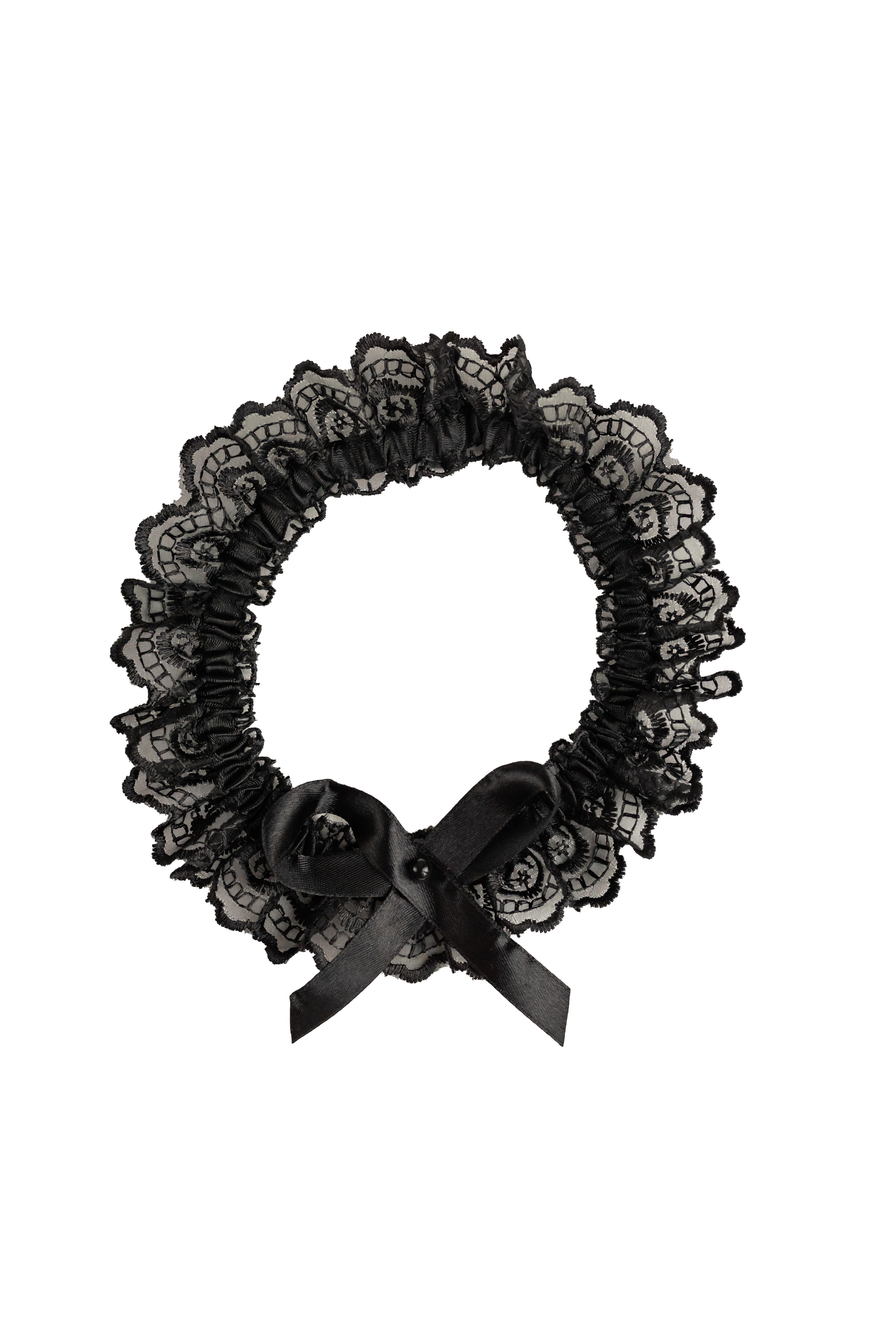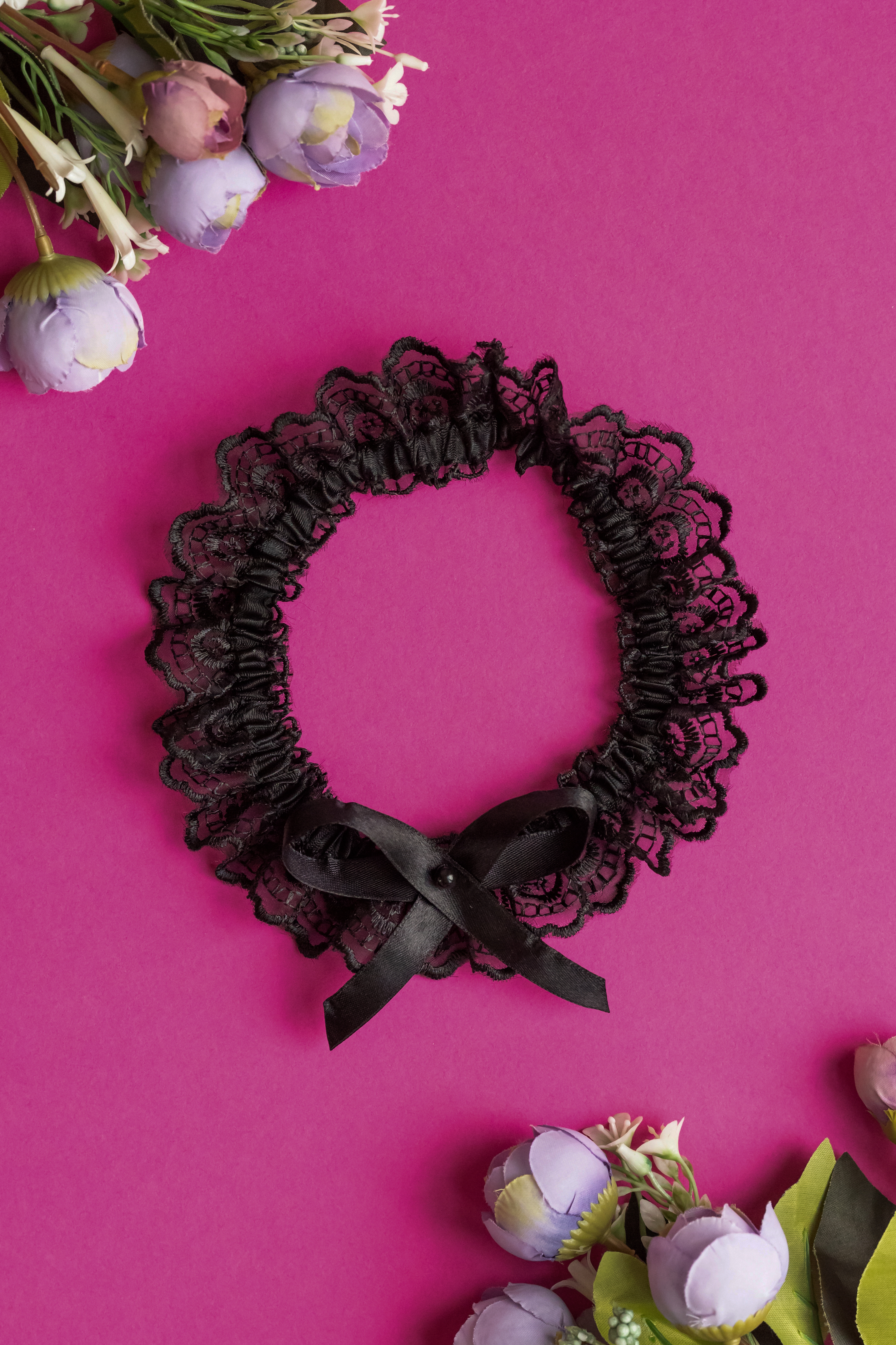 Дизайнерская подвязка для девушки на свадьбу, фотосессию и свидание из черного кружева с бантом из атласной ленты и темной бусиной