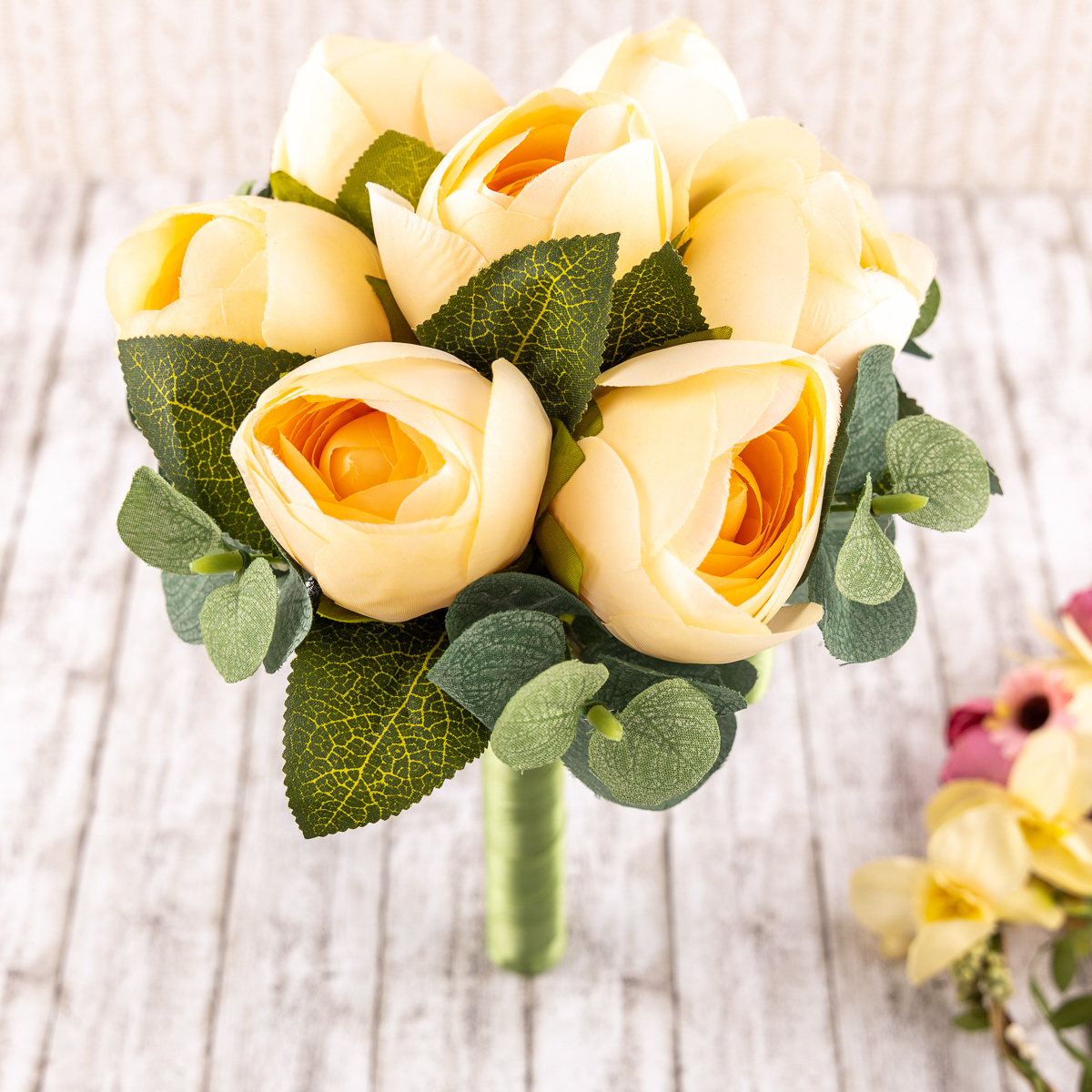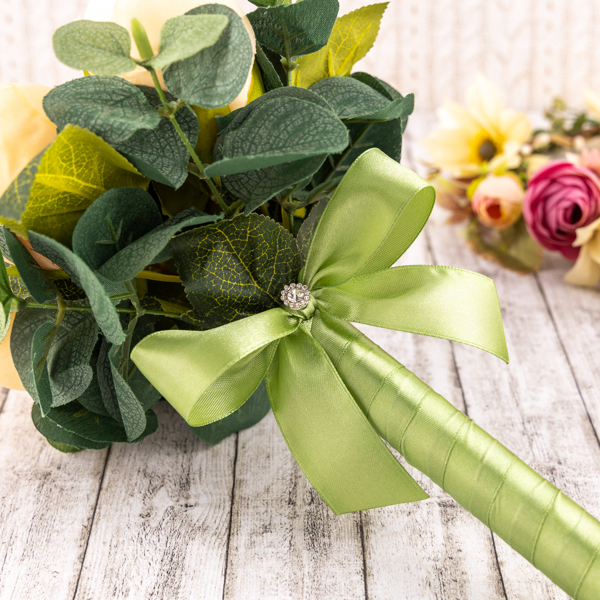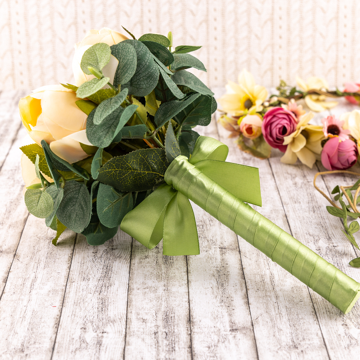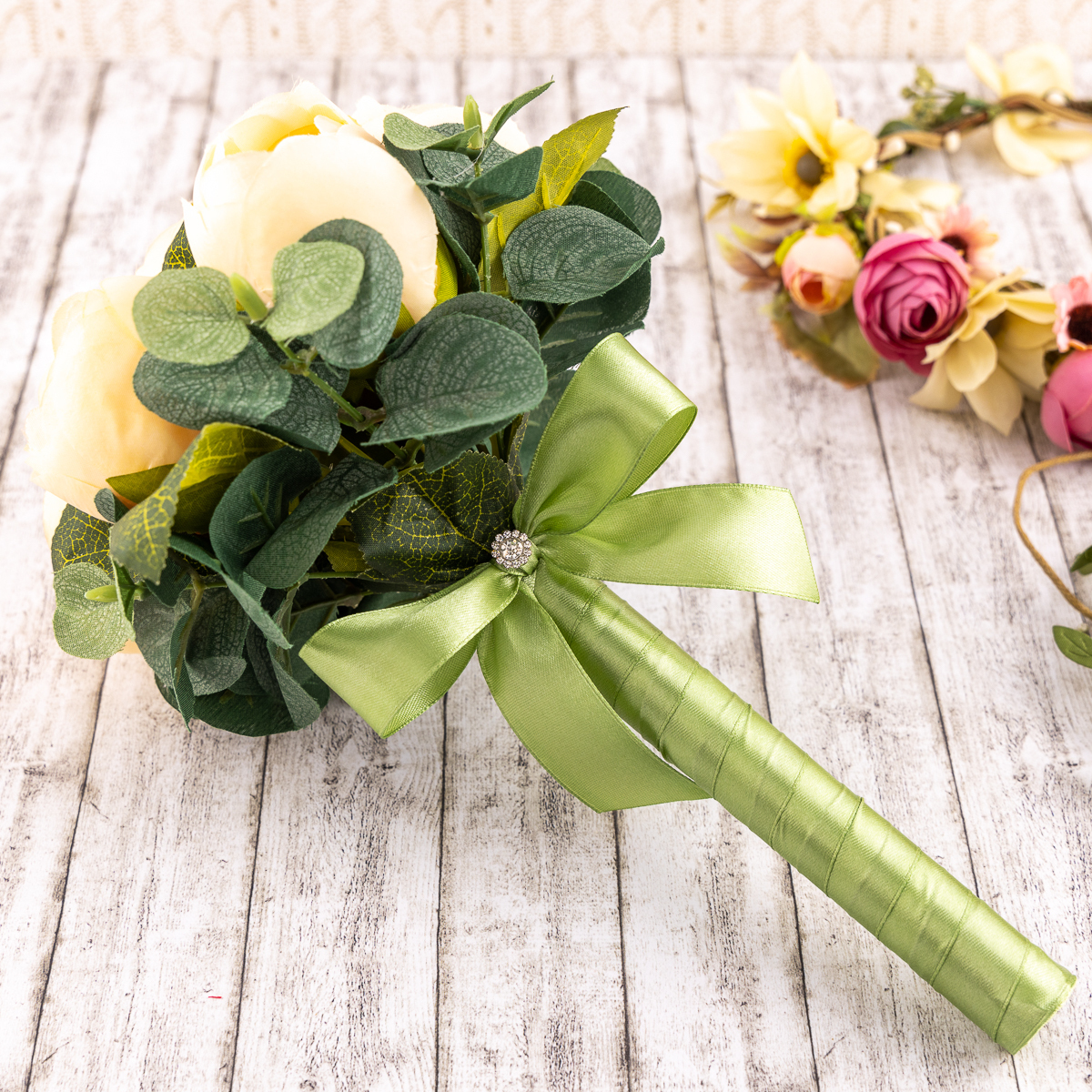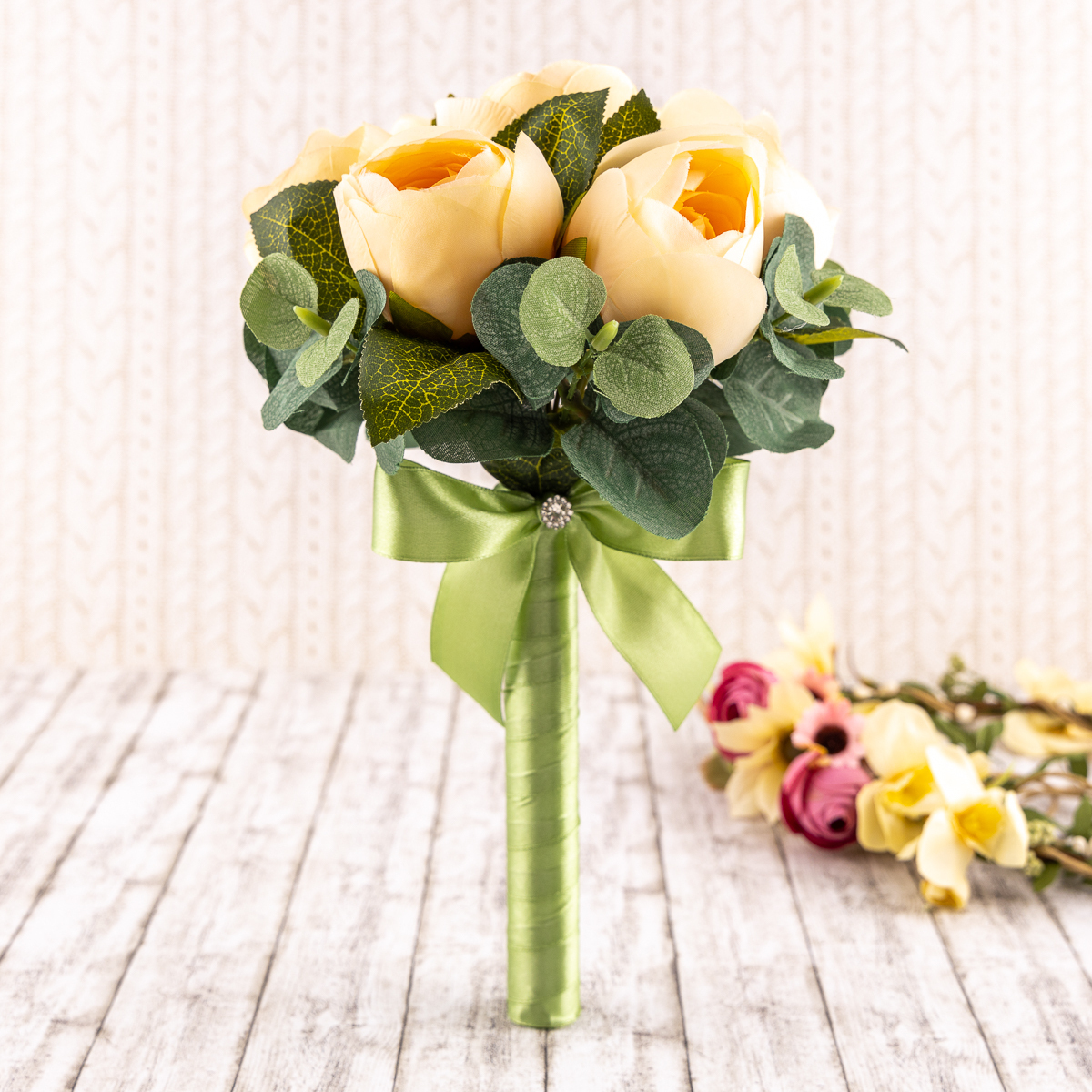 Свадебный букет дублер невесты "Персиковые пионы" с мягкими бутонами из ткани, зелеными листочками и атласными ленточками
