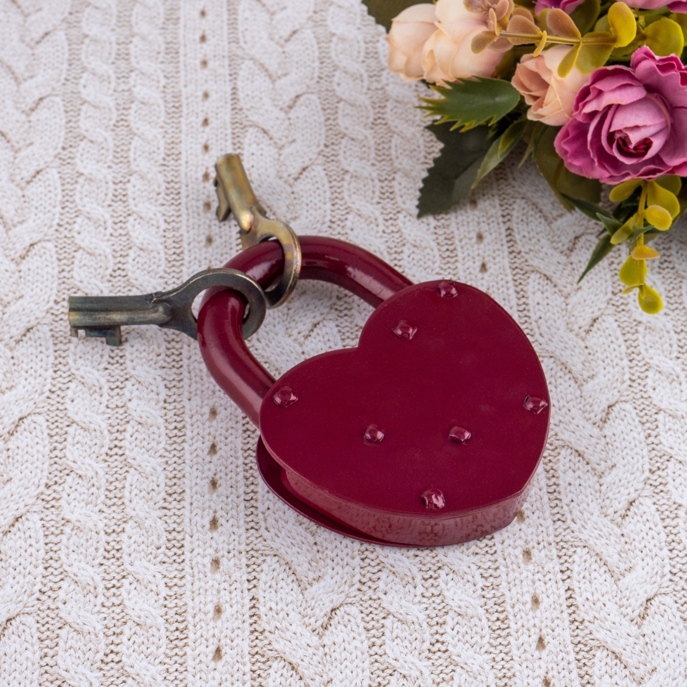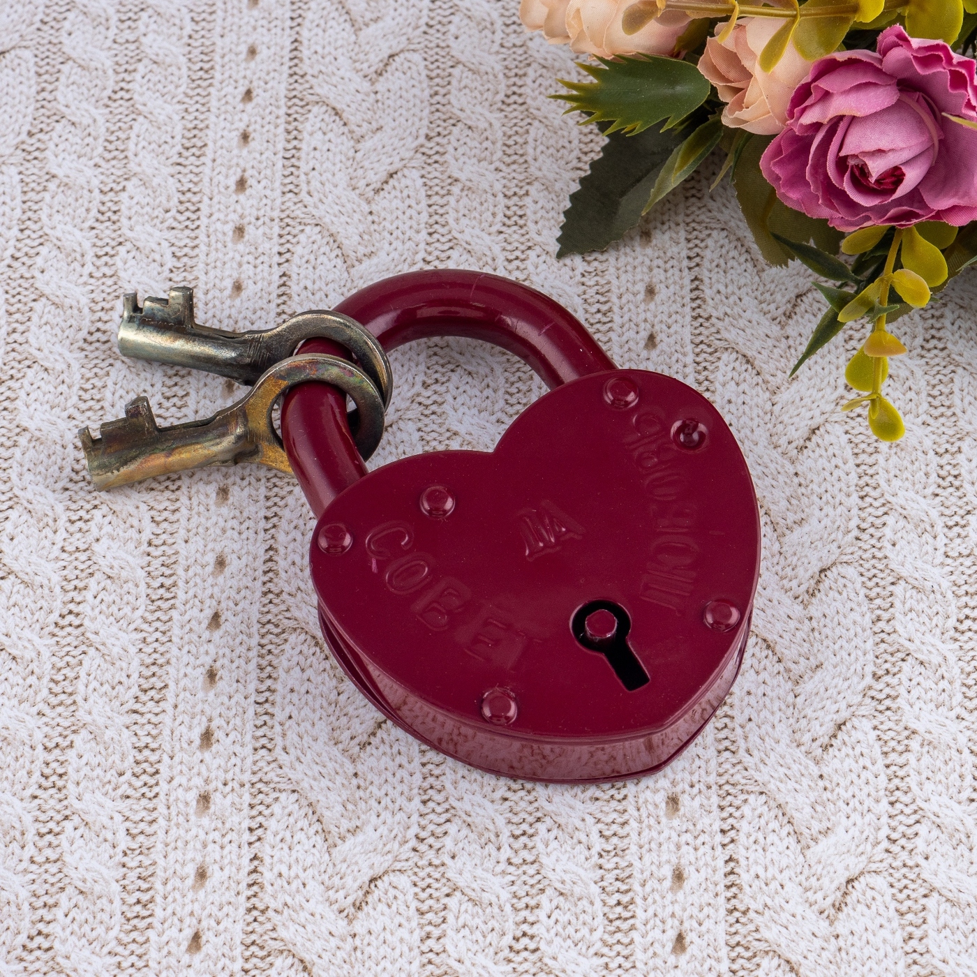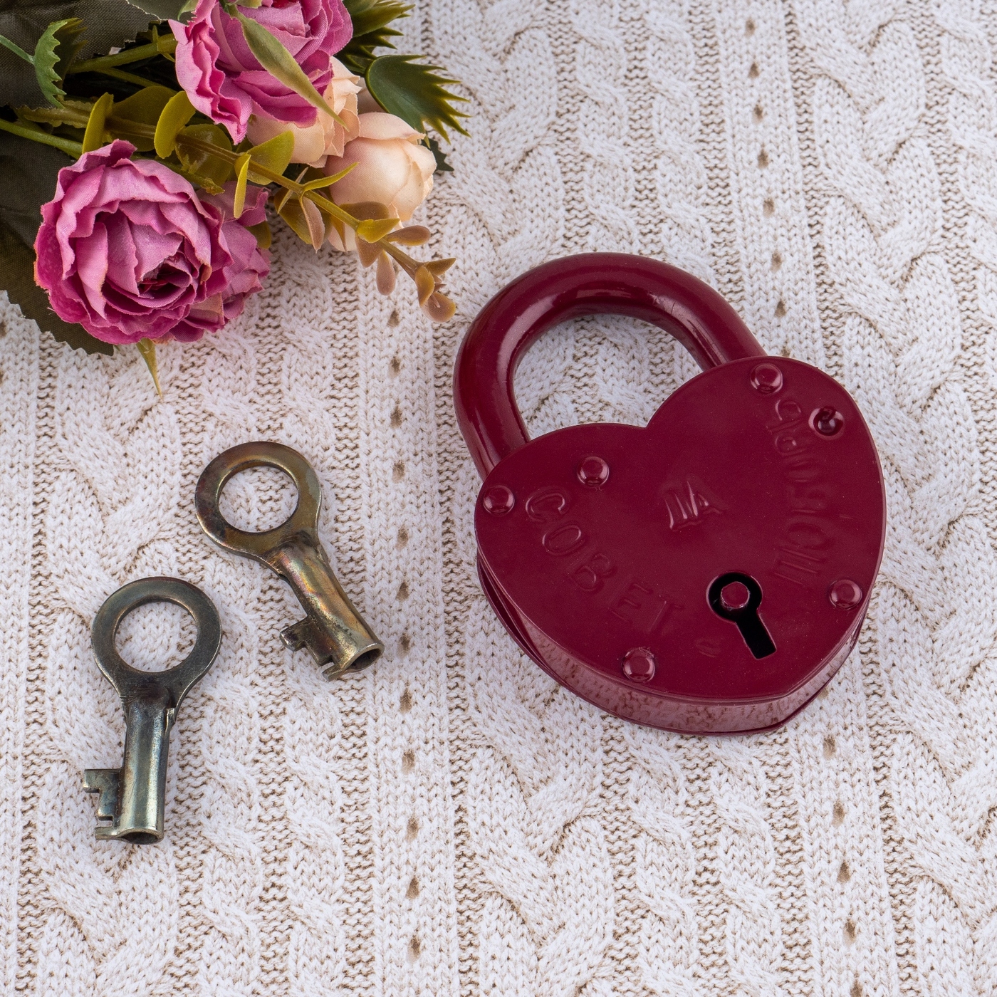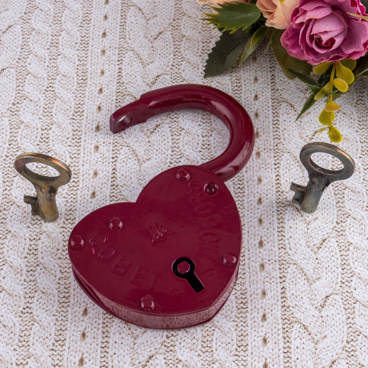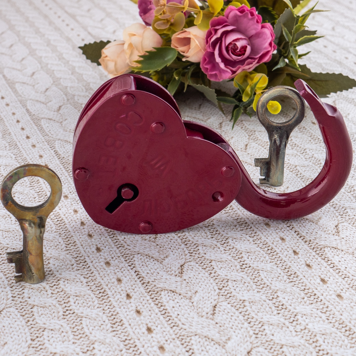 Металлический замочек любви на свадьбу "Совет да любовь" из металла бордового цвета с надписью и двумя ключами