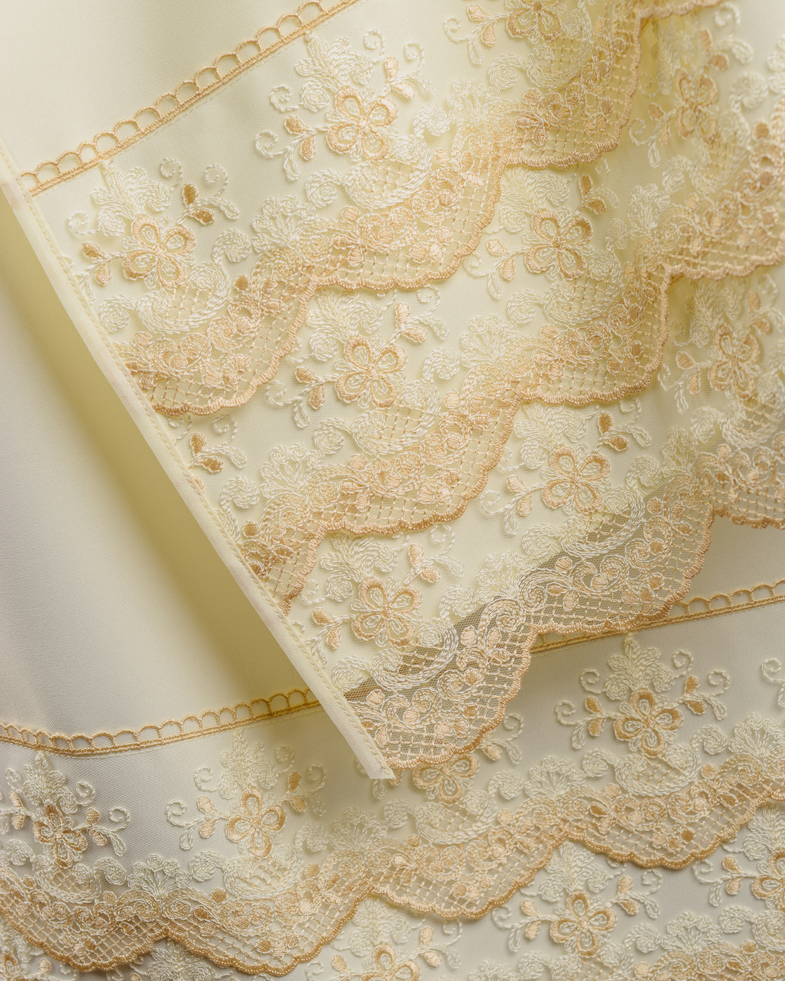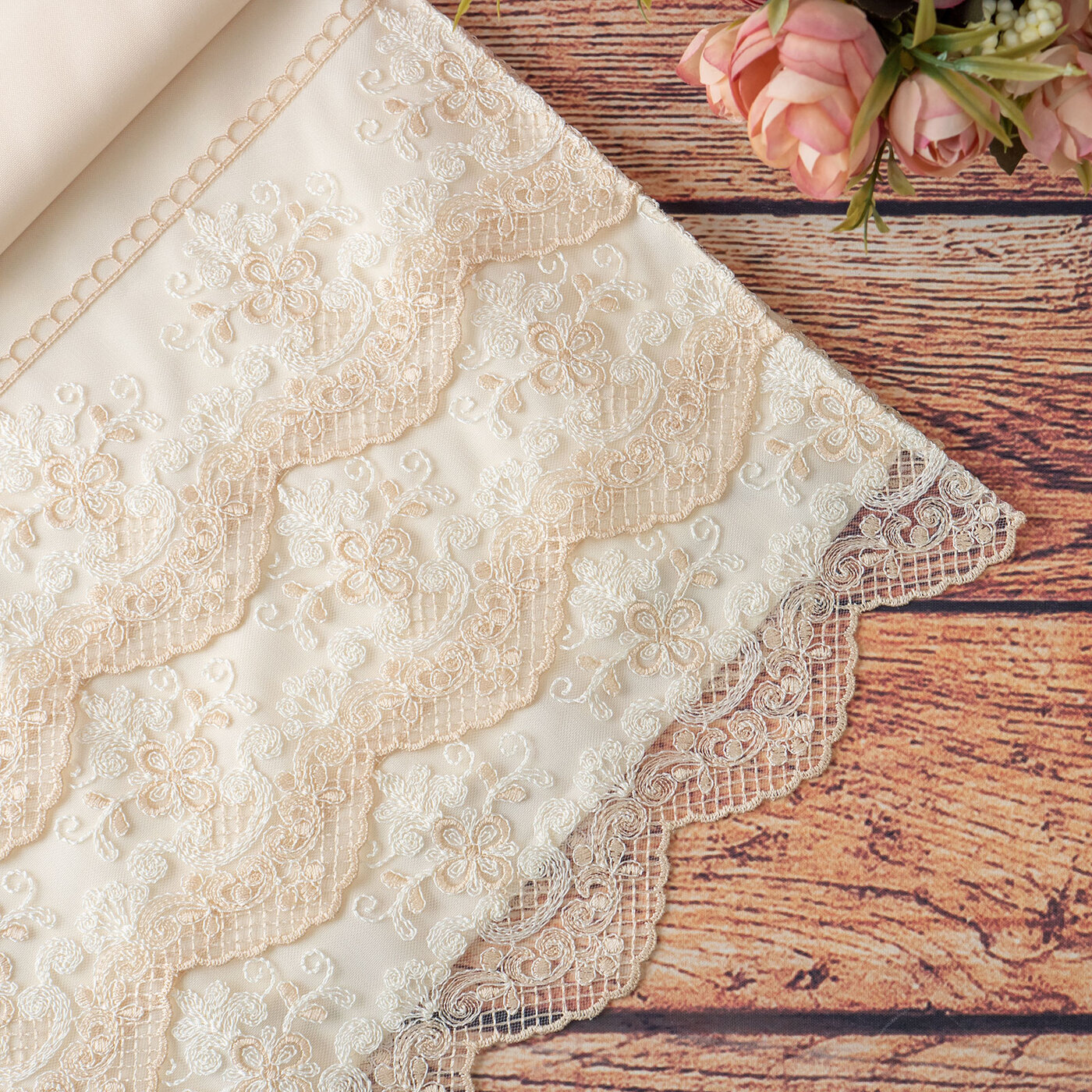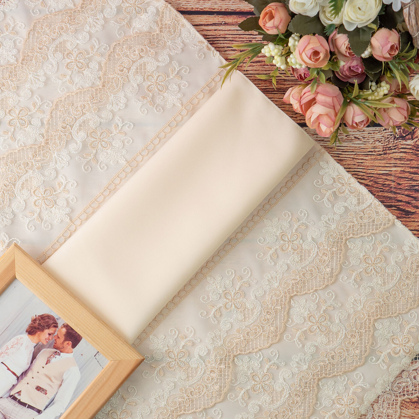 Роскошный свадебный рушник для венчания и под ноги молодоженам из габардина айвори с двухцветным кружевом кремового цвета ручной работы