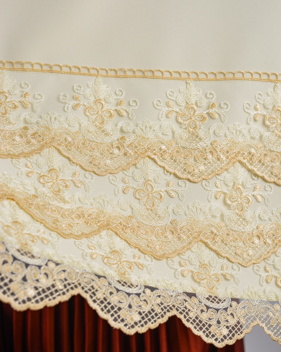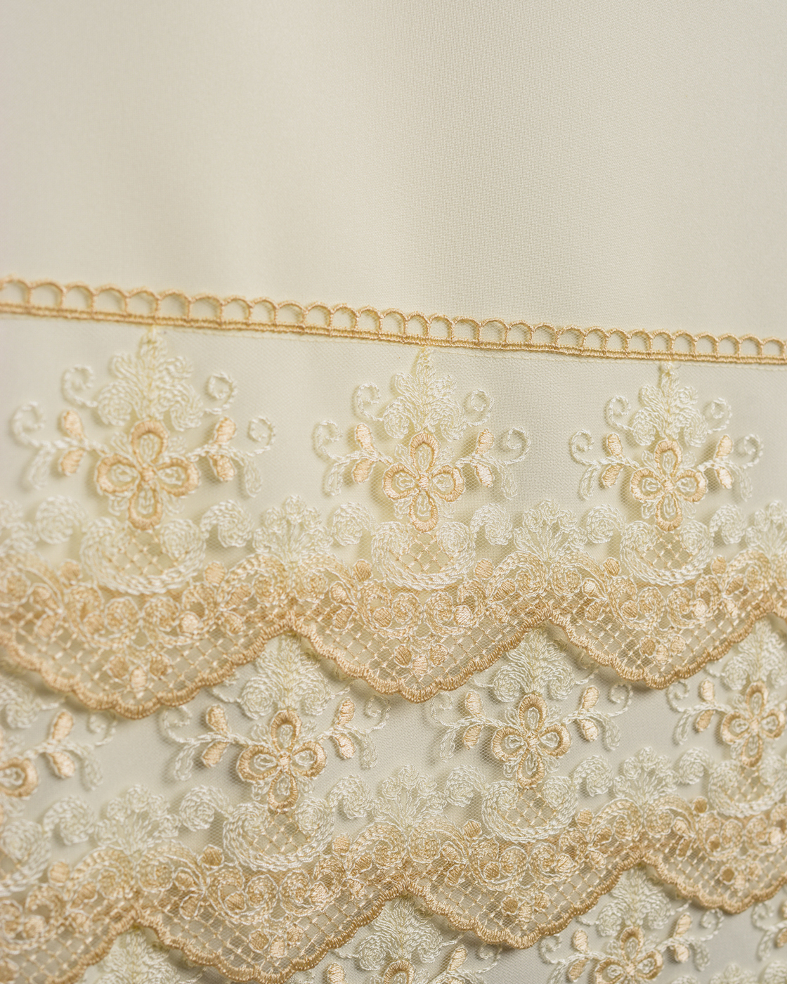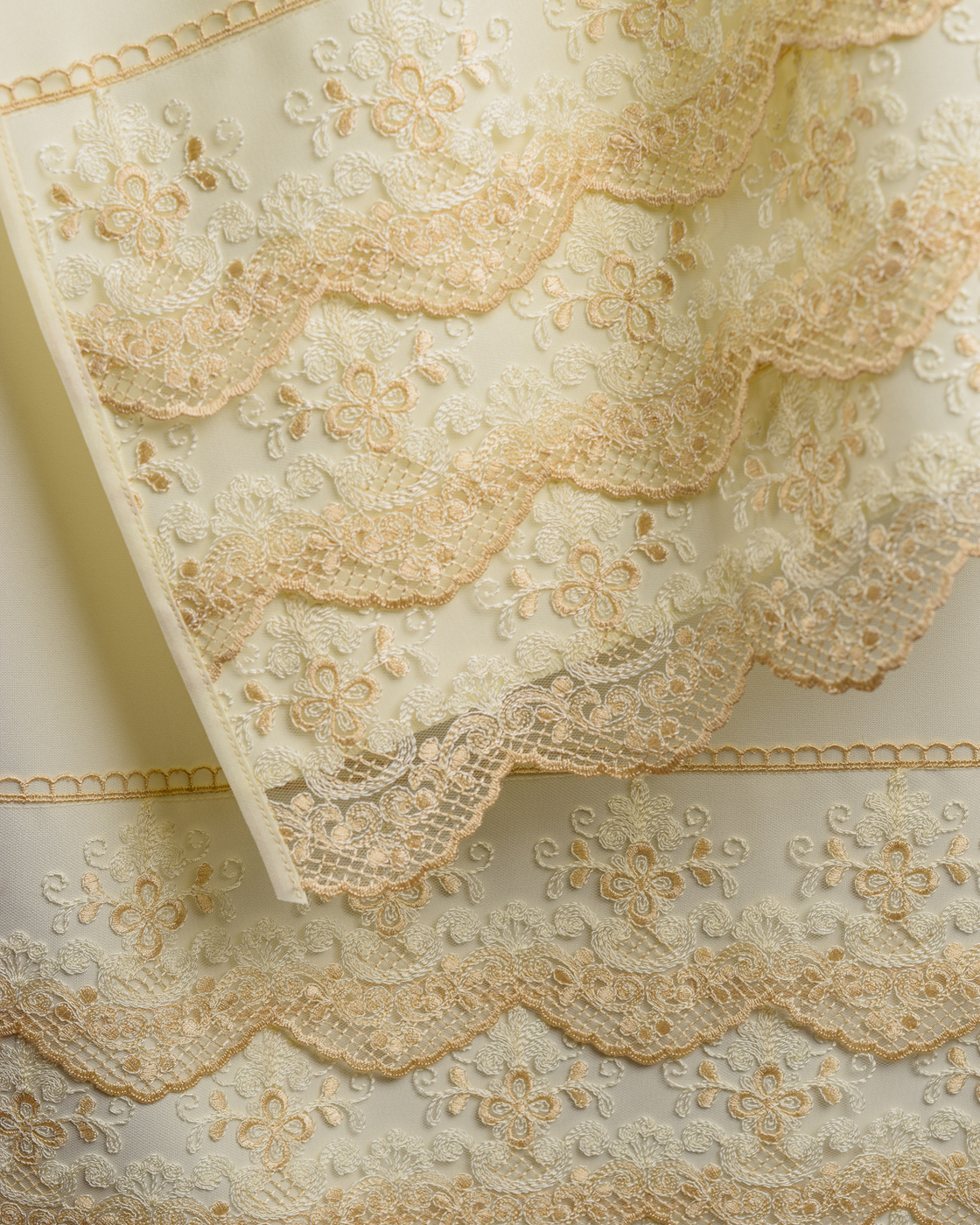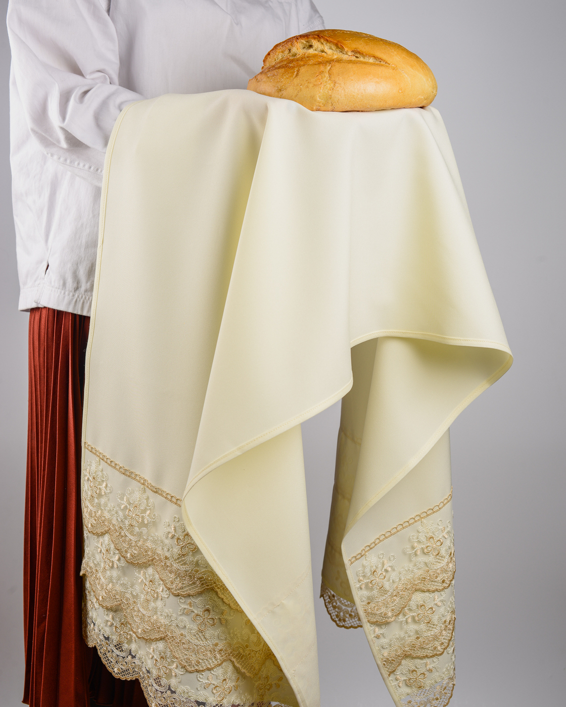 Роскошный свадебный рушник для венчания и под ноги молодоженам из габардина айвори с двухцветным кружевом кремового цвета ручной работы
