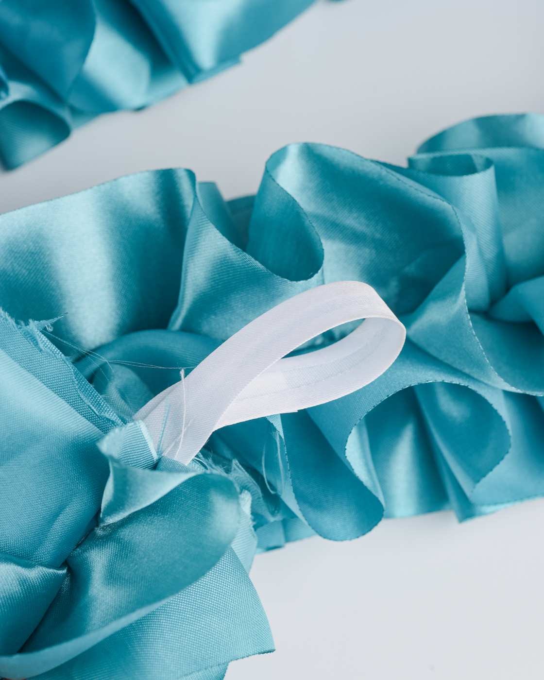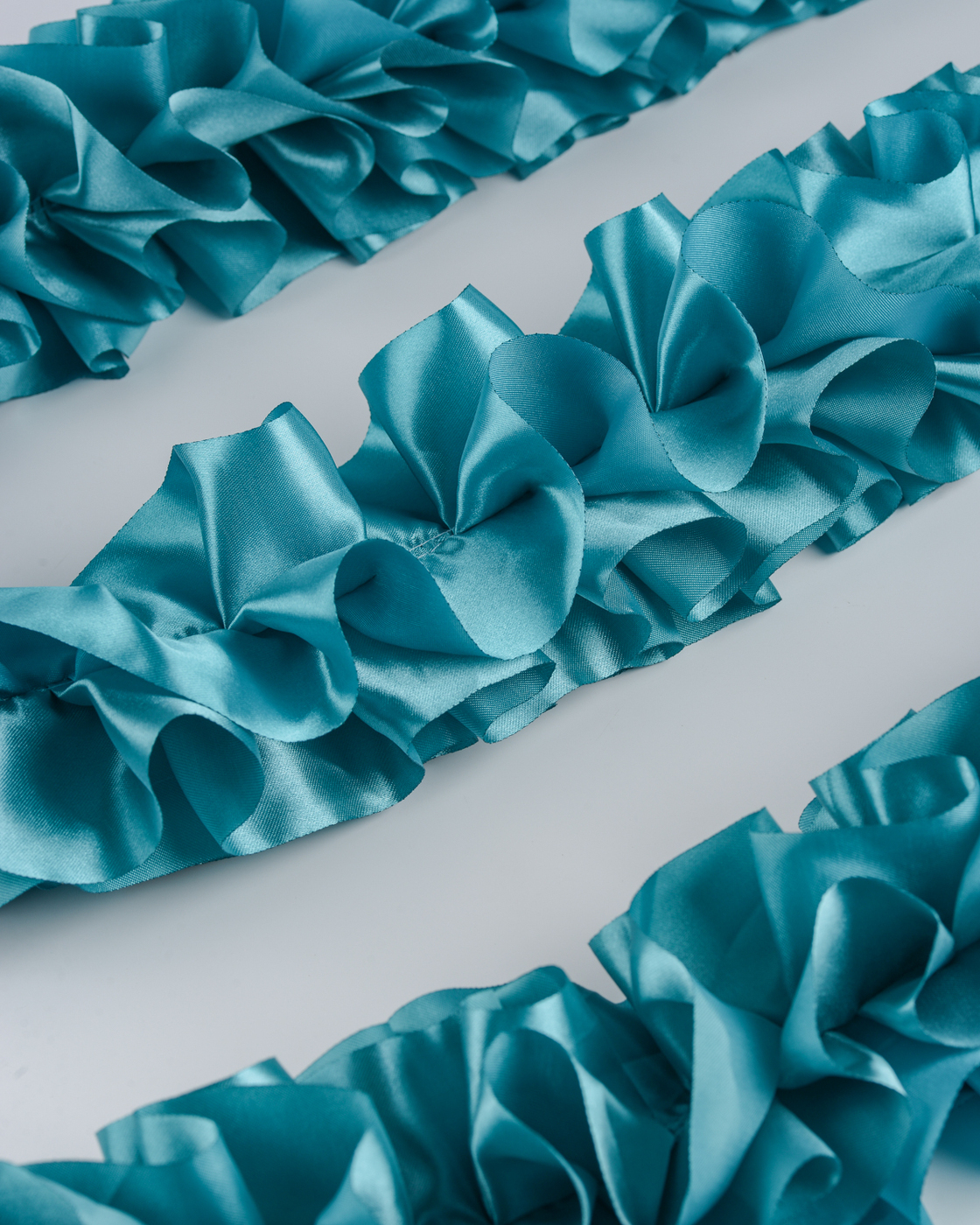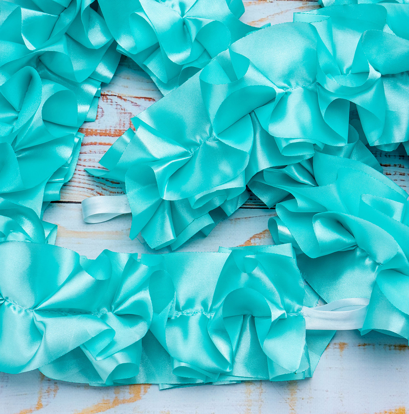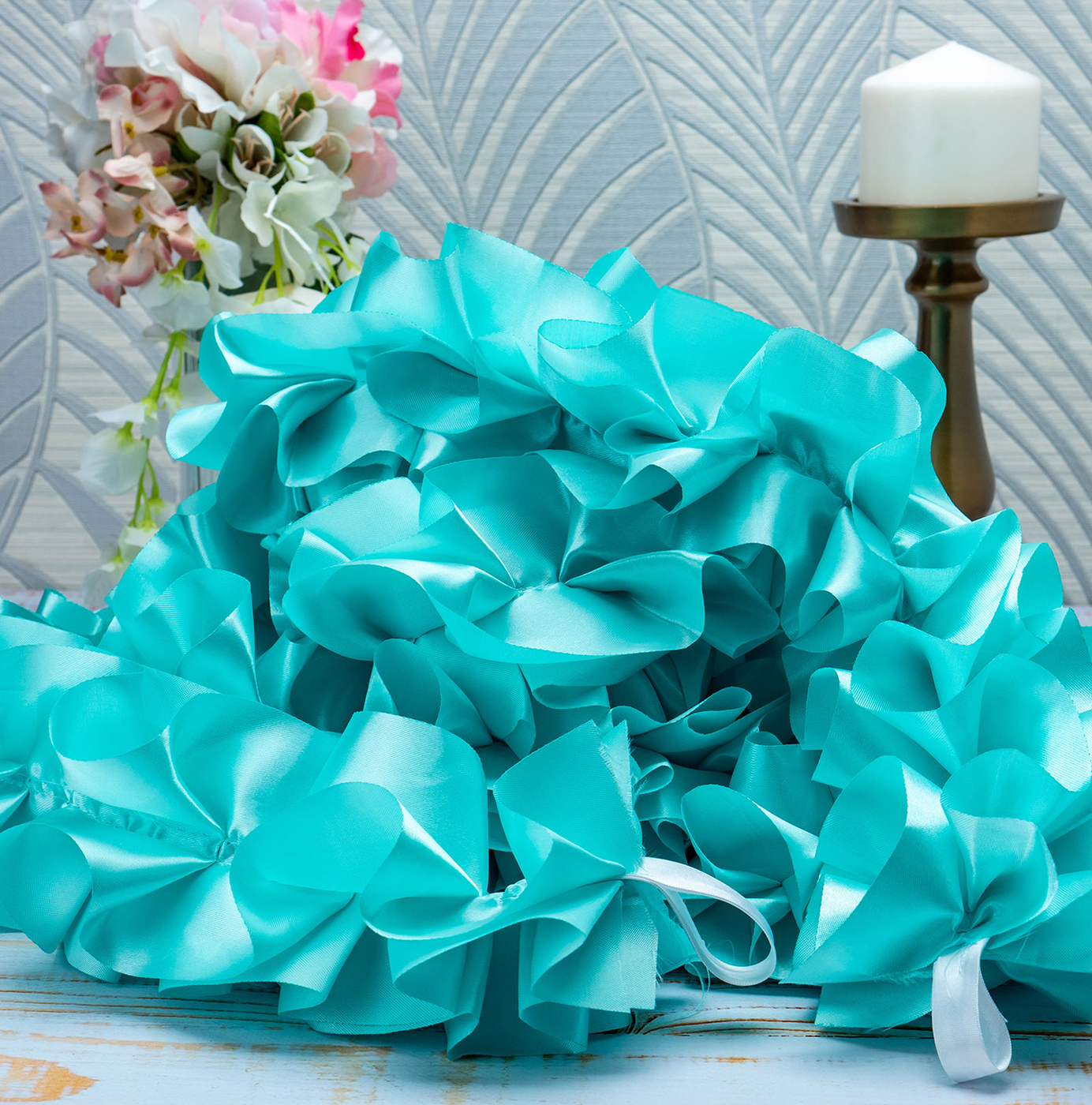 Ментоловая лента - рюш из атласной ленты на капот свадебного авто, 3 метра